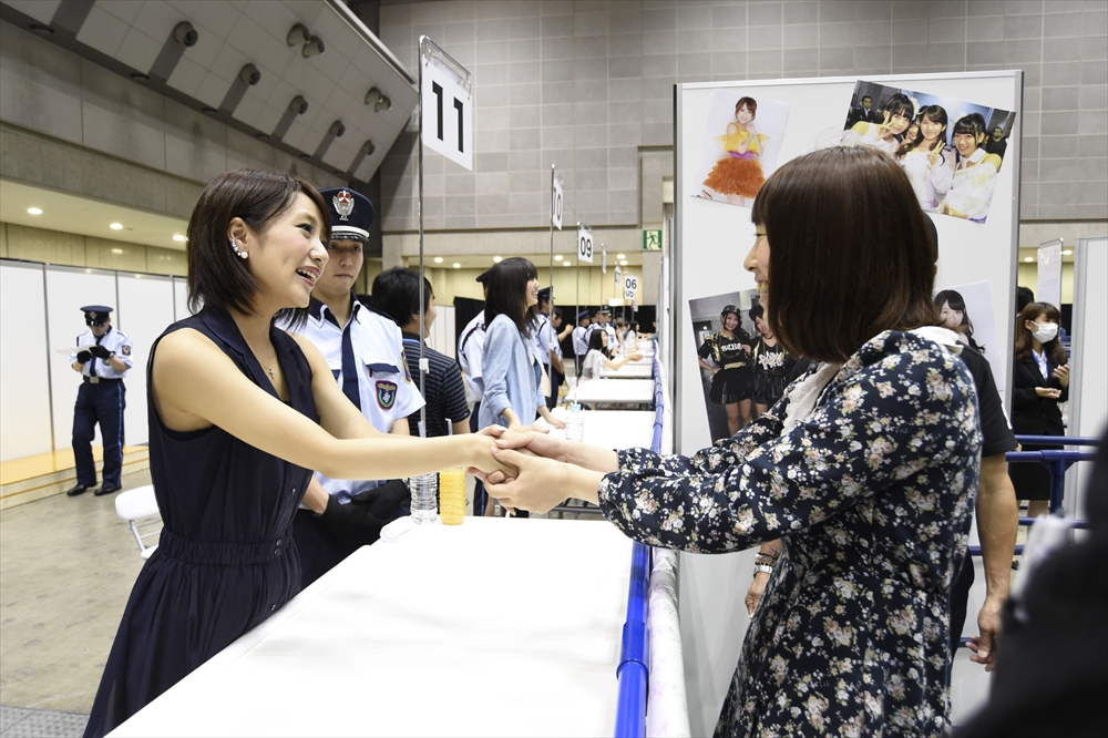今回の握手会から警備体制を見直し、警備スタッフを約350名と以前と比べて約7倍に増員。会場整理スタッフも約700名配置し、金属探知機によるボディチェックやカバンの中に危険物が無いかの手荷物チェック。飲み物は警備員の前で試飲を求めるなど厳重なチェック体制で警備を強化。