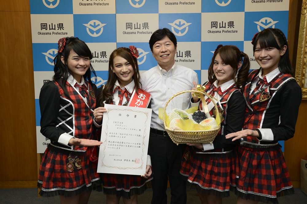 7月7日、インドネシア・ジャカルタを本拠地として活動するJKT48のメンバーであるメロディーさんが、岡山県の「おかやまフルーツ大使」に就任し、その任命式が岡山県庁知事室にて行われた。