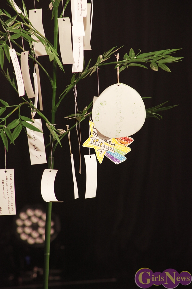 2年前の7月7日に結成したi☆Ris、生誕公演となるこの日は七夕にちなんで短冊を用意。若井友希さんがずっと仲良しと書くなどメンバーそれぞれ様々な願いを短冊に込めていた。また、その後のMCではi☆Risの2年間を振り返る動画なども流された。