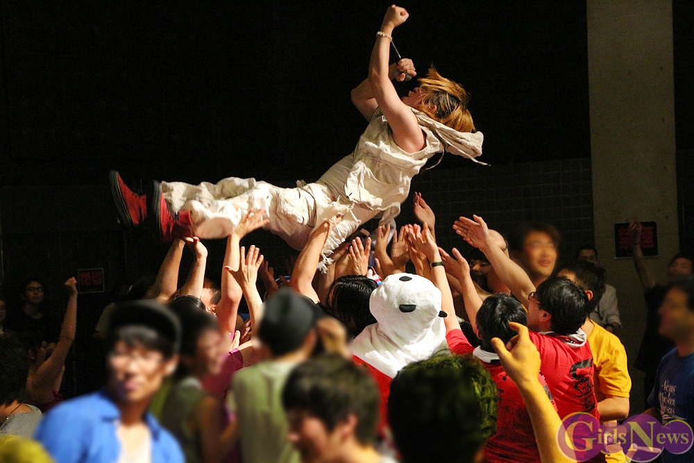 「力の限り!!!」では、タオルを振り回して応援する客席フロアに、学園長でプロデューサーの「SHUN」さんが先陣を切って飛び込んでいき、ファンを巻き込んでの大きな渦を巻き起こした。アイドルもファンも、その場にいる全ての人が