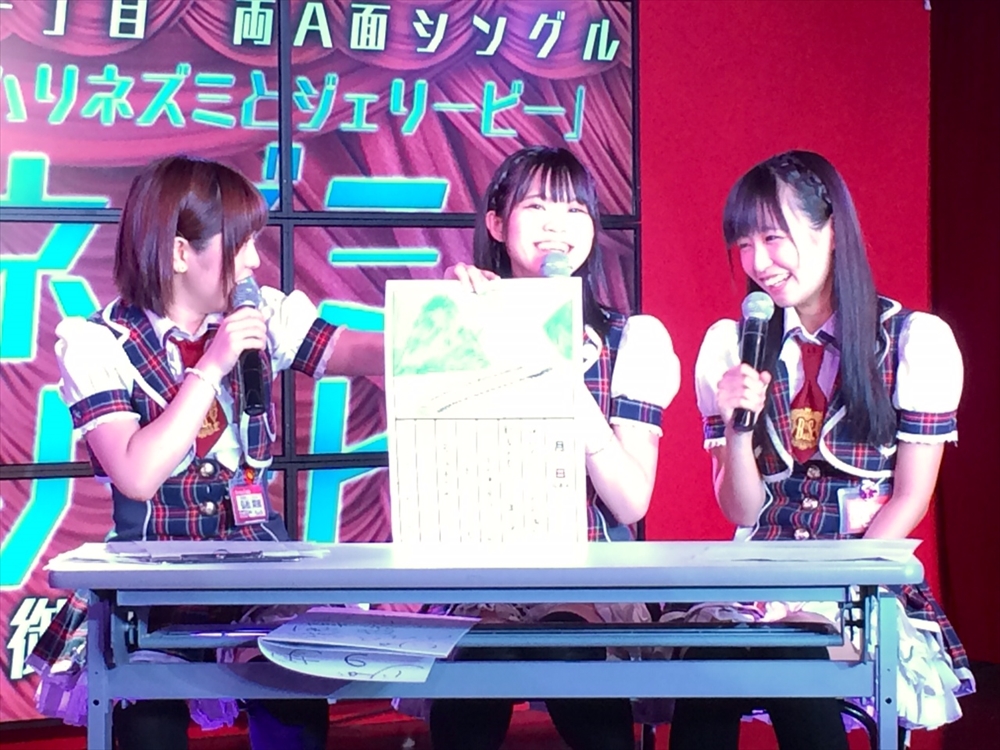 毎日MCをリレー形式で交代し、夏休み期間中の店舗情報や日々のステージ情報、その日のニュースをメンバーがアイドル目線で紹介。メンバーのサイン入りプレゼント企画も有り、盛りだくさんの内容になっている。