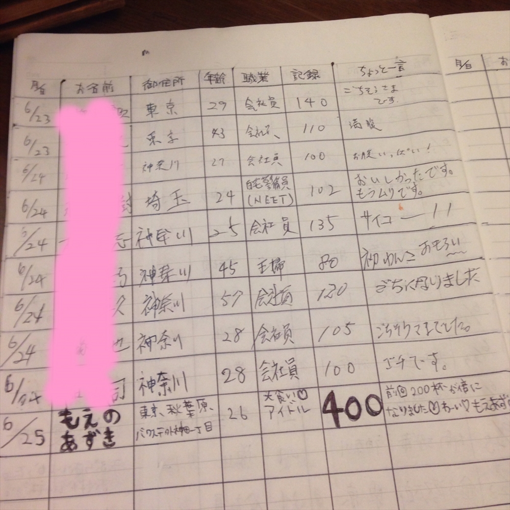 ちなみにチャレンジ途中でお店のお碗が無くなってしまい、写真に残せたのは300杯分だったそうだ。