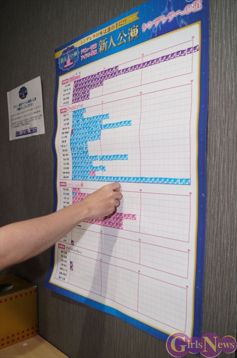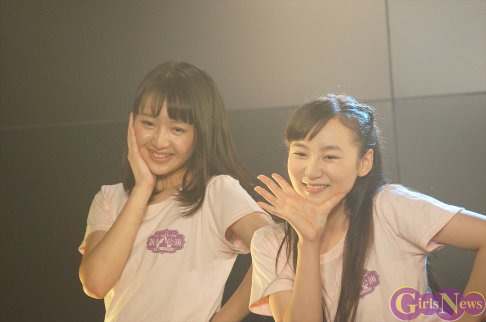 続いて、チェキッ娘の「最初のキモチ」を披露すると、今度はメンバーのあだ名を決めることになり、門前亜里(ありりん)、内山珠希(たまちゃん)、小松もか(こまっちゃん)、神岡実希(ゴッドヒル)、鉄戸美桜(てっちゃん)、菅沼もにか(もにーちゃん)、我妻桃実(ぽにょ)に決定。今後軌道修正があるかもしれないが、とりあえずこのニックネームに決まった。