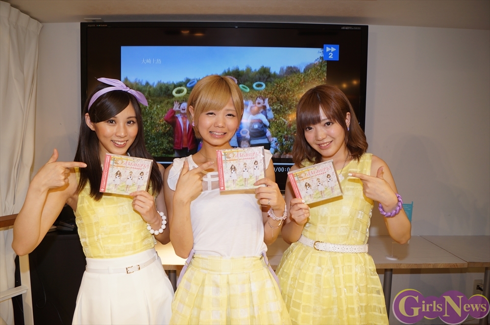 そして新曲「桜エトランゼ」のPVを上映。谷野愛美さんはPV撮影のエピソードとして「桜のシーズンにお花見に行けなくて、すごくテンションが上がって、3人で桜を見ながら休憩しながら、お花見気分も味わえながら楽しめました。」と語っていた。