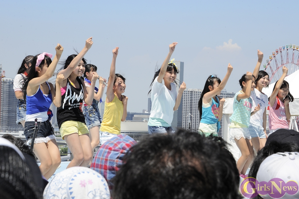 1曲目はTRFのカヴァーである「BOY MEETS GIRL」。観客になじみ深い1曲で、持ち味のダンスを前面にアピールする。途中からは妹分ユニット・プリズム☆メイツも登場し、ステージを賑わせた。続いては「ワンダッ」。この曲はダンスにも負けないキレキレのラップパートが見もの。つめかけた観客も、彼女たちの一挙手一投足にボルテージを高めていく。そして、最後は9月17日発売の新曲「Jumpin’!Dancin’!」を披露。現行の体制では初めてのシングル曲ということもあり、新たな4人の代表曲ということで、パフォーマンスのギアがもう1段上がった。