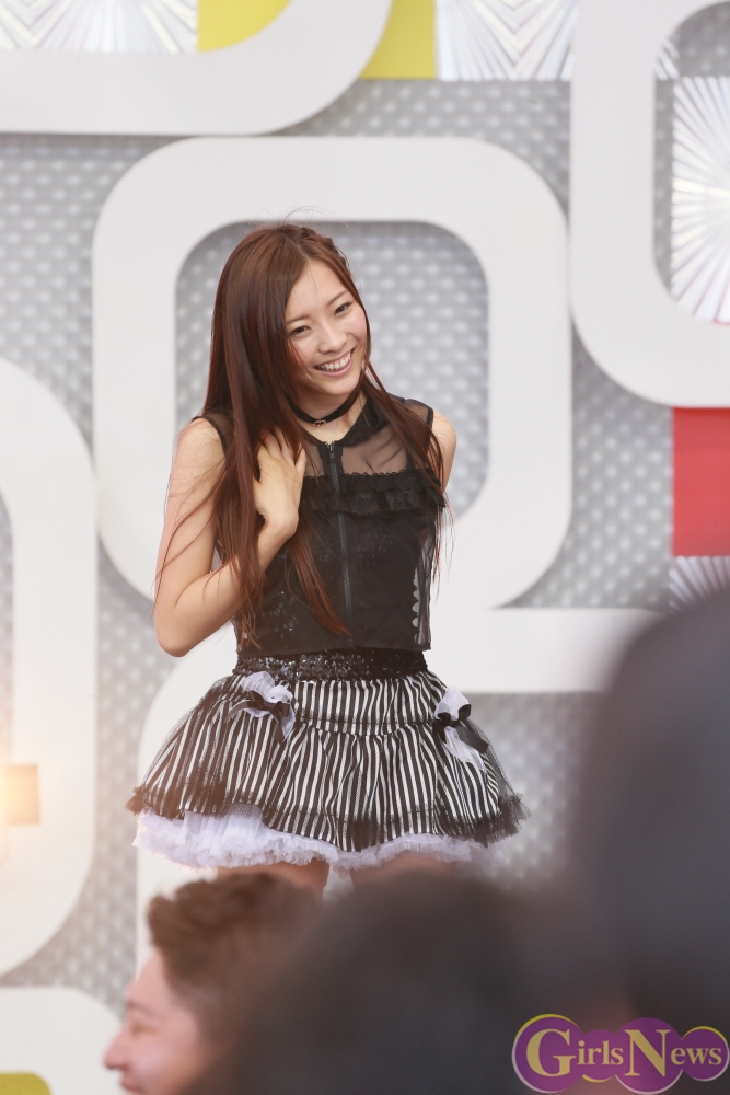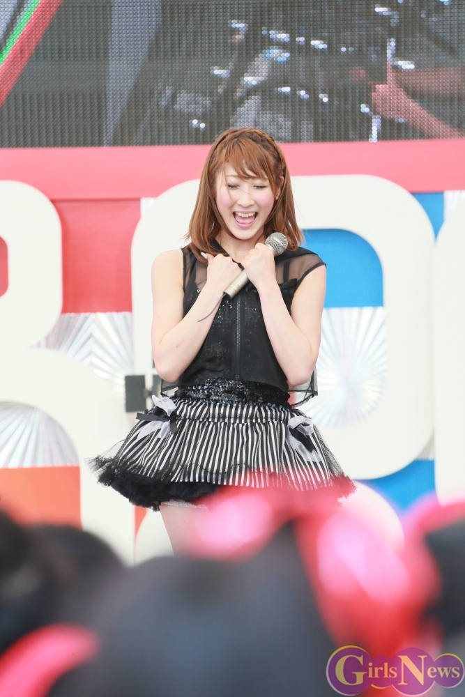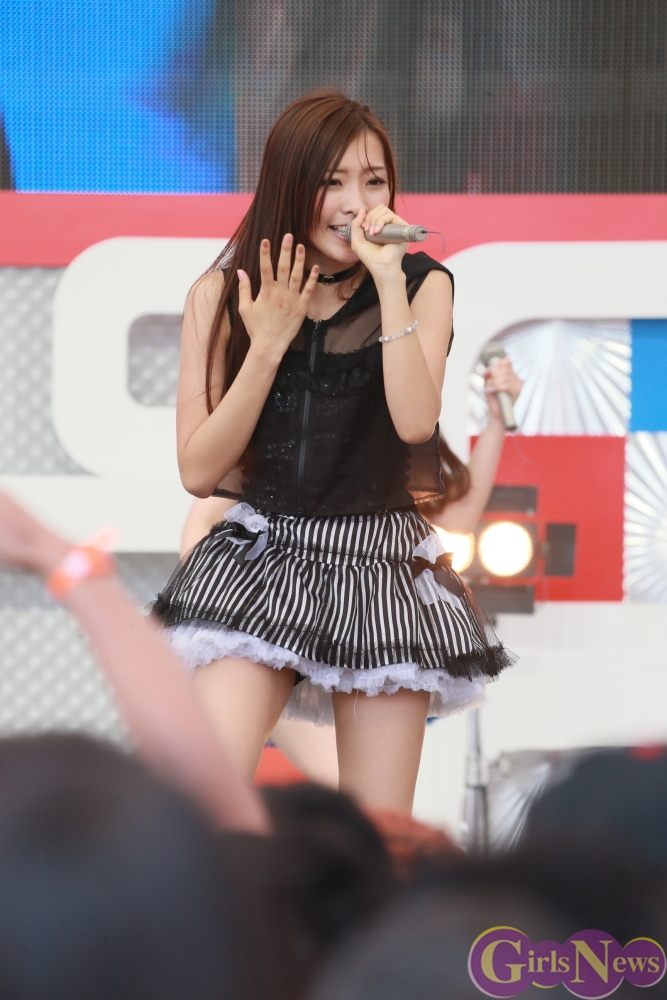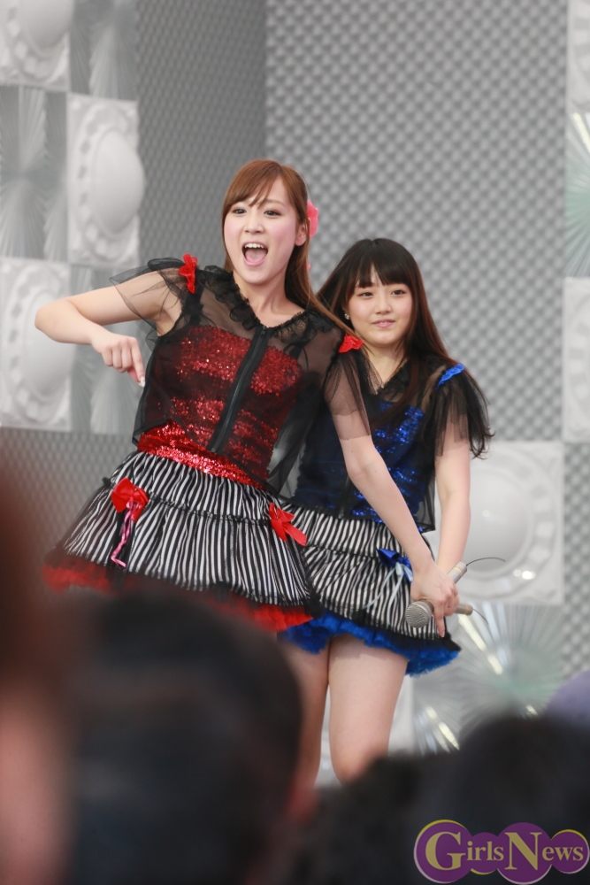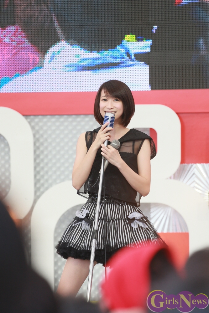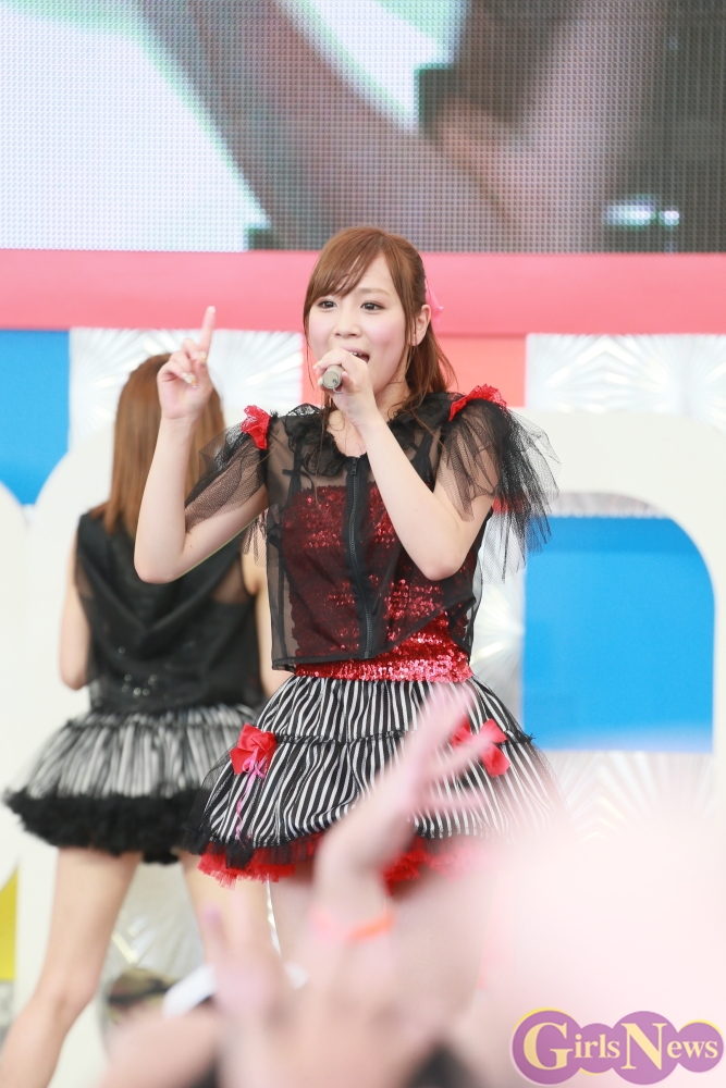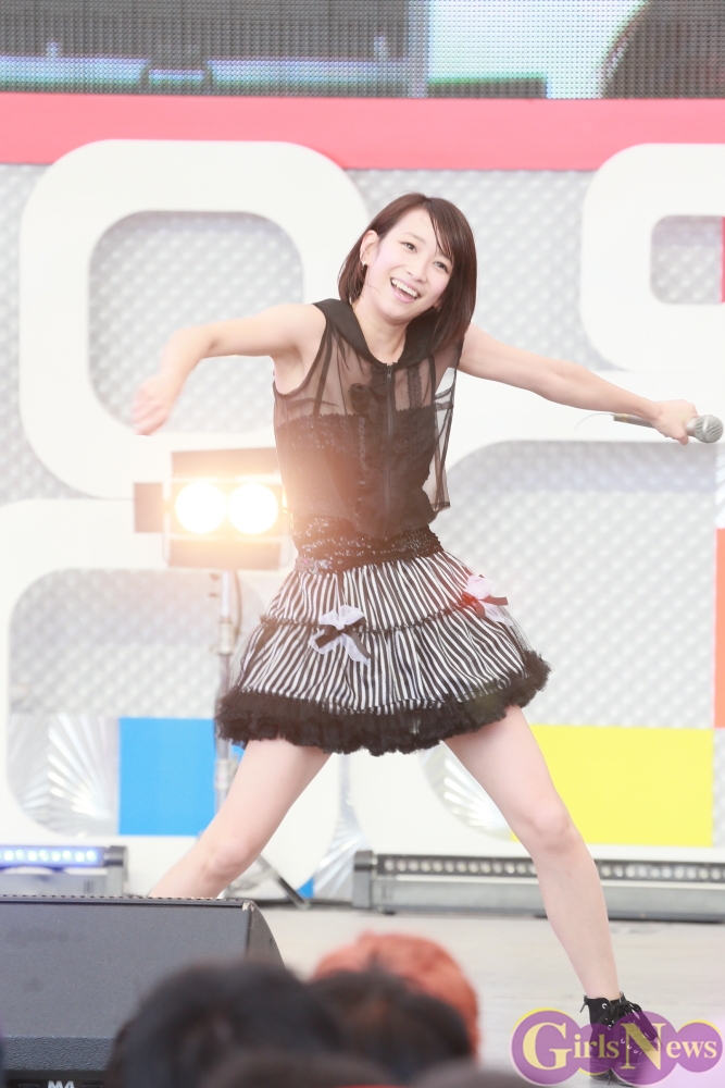 セットリストは全5曲。制約の多いステージということもありファンの上を渡るような暴れっぷりは見ることができなかったが、それでもステージ上に脚立が置かれているグループは彼女たちくらいのもの。メンバーの水野晴子さんが「朝、トップバッターのしず風&絆から、TOKYO IDOL FESTIVAL2日目の一発目から、ホットホットなステージにしていきたいと思うので、ここにいるみなさんでしず風&絆のステージ、楽しんでいってください!」との意気込み通り、まだまだ体が重いファンを煽り臨戦態勢へと導いた。3曲目に披露したのは、8月19日発売の「WONDER PARADE」。ボルテージが上がってきたファンの熱気も助けに、新たな6人の魅力を存分にアピールした。最後の2曲は彼女たちのライブの定番曲ともいえる、「つくしんぼう」と「PINKのロケット」。気が付けば会場に漂っていた朝イチのけだるさは嘘のように消え、TIFのメインステージにふさわしい盛り上がりとなった。