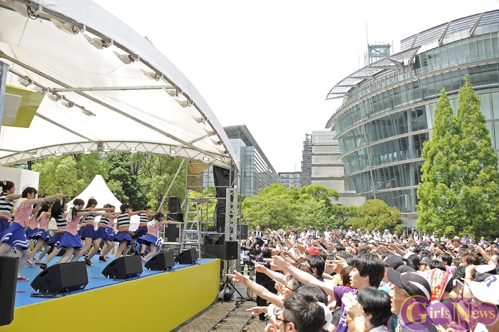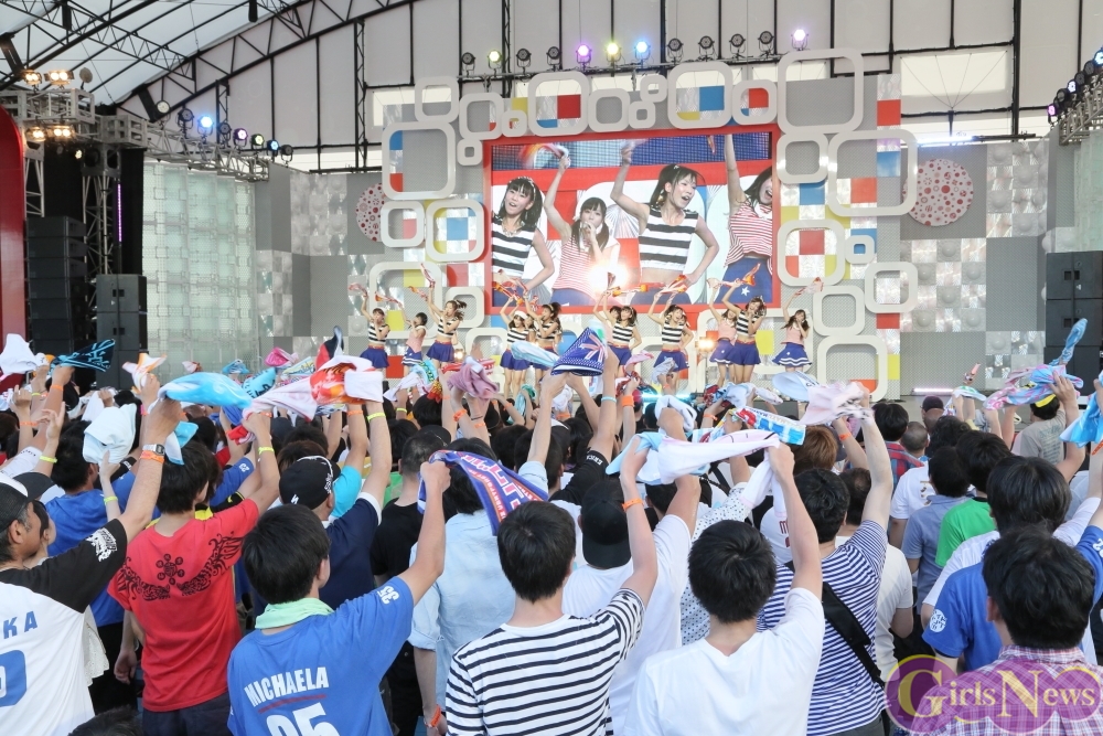 前日のTIFで何か悔しい思いをしたとのことで、この日のHOT STAGEは特に気合を入れて臨んでいたLinQ。次の曲「Fighting Girl」から最後の「HANABI!!」まで6曲連続ノンストップのスペシャルメドレー!勢いがあって、休む暇を与えない最高のライブに観客のテンションも最高潮!LinQのファンも、他のアイドルのファンも一緒になってタオルを振り回してLinQのライブを盛り上げた!