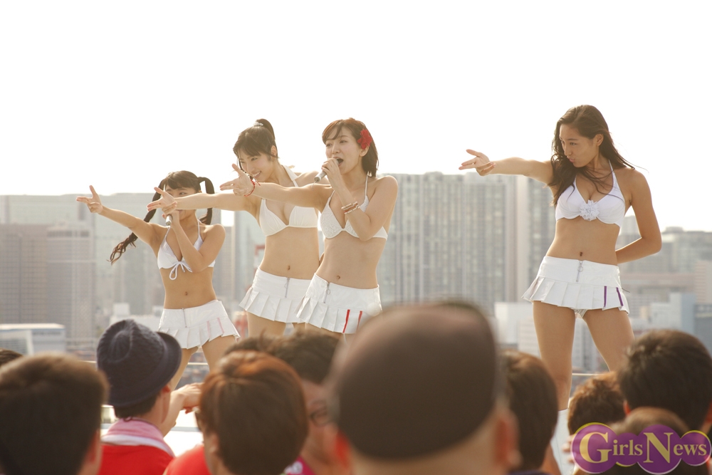 翌、3日にはSKY STAGEに純白ビキニ衣装で登場し、夏を感じさせる熱いライブを行った。