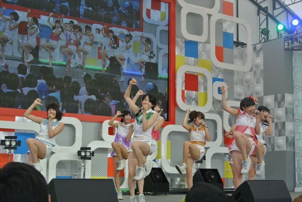 トリはもちろんSUPER☆GiRLS。今年で同ライブには3年連続の出場だ。8月13日リリースになる「アッハッハ!~超絶爆笑音頭~」をはじめ、めざましライブ恒例の「BELIEVER」など計4曲を披露。浴衣風の衣装で夏らしく、元気いっぱいに盛り上がる楽曲と12人の貫録がありつつも、抜かりないパフォーマンスに約1,000人の観客は大盛り上がり、3組のラストをしめくくった。
