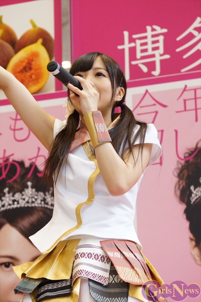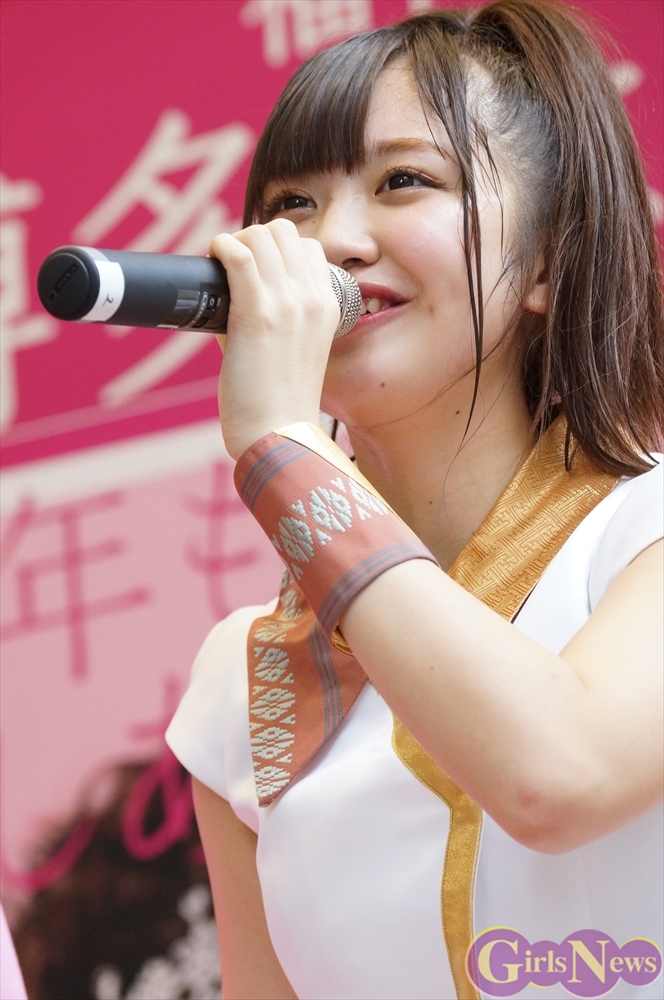 岸田麻佑さんは「今日はマルイシティ渋谷でライブができると聞いた時からすごく楽しみにしてました。来てみたら人がどこ見てもたくさんいてびっくりしました。一人でも多くLinQファンになってもらって、博多とよみつひめのことももっともっと知ってもらいたいと思いながらライブをやってました。」