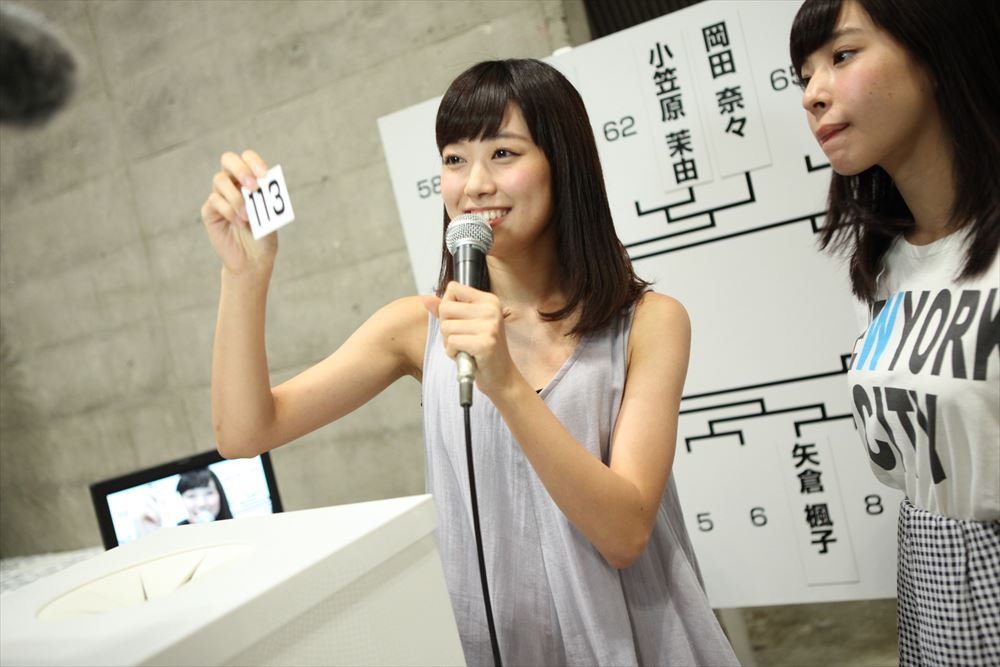 また、前日の予備戦により、武道館での本戦に参加する総勢113名が決定したじゃんけん大会。本日は握手会の合間を利用して、本戦の組み合わせ抽選が行われた。運命のいたずらかはたまた偶然か、1回戦から注目のカードが続出。高橋みなみさんと対戦することになった山本彩さんは驚きながらも「勝たないと上に行けませんから」とグループ総監督相手にも一歩も引かない様子を見せた。乃木坂46との交換留学生として初参加となる生駒里奈さんには、じゃんけん大会では過去無類の強さを誇ってきた小嶋陽菜さんが立ちはだかる。