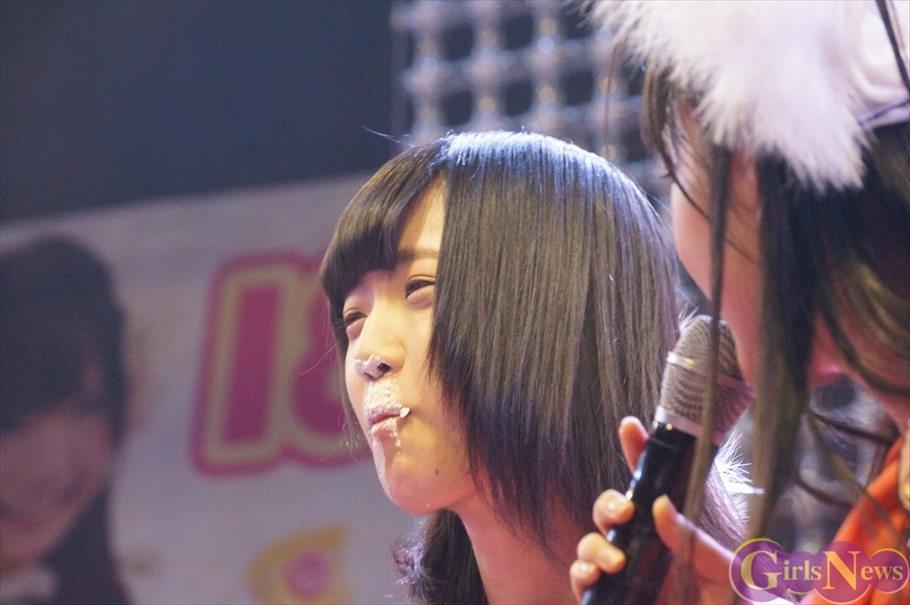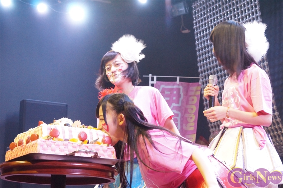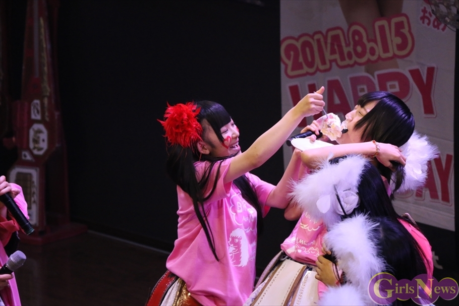 生誕祭セレモニーでは、伊藤みうさんの大好きだというハリネズミが等身大で作られたケーキが登場。天木じゅんさんから恒例の“あ~ん”をしてもらった伊藤みうさんは口の周りにケーキを付けながらも美味しそうに食べていた。そして、ヲタ図鑑や花束の贈呈があったのだが、花束を渡そうと迫るアーマーガールズメンバーにたじろいだ伊藤みうさんが尻もちをつく一幕があった。