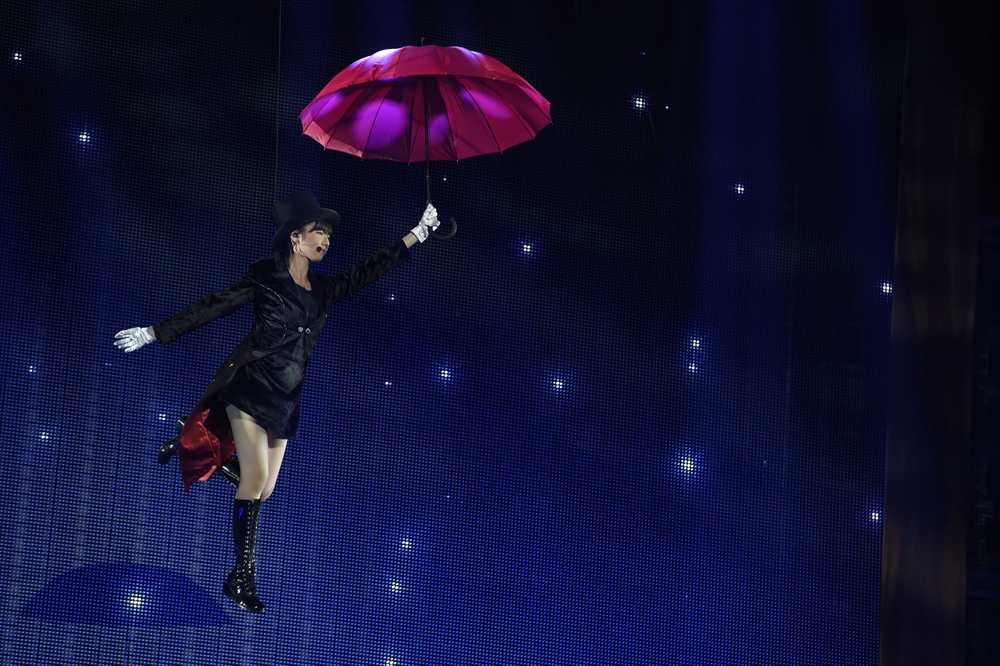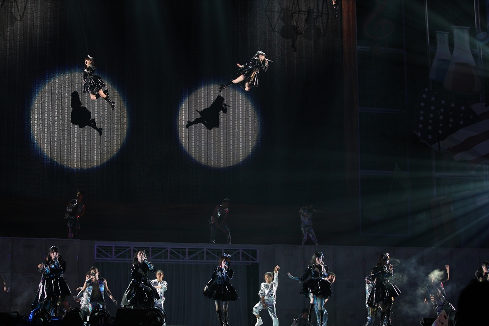 会場は学校をイメージした本ステージと、三段に高くなるアリーナ中心にあるセンターステージ。センターステージからは四方に花道が伸び、上手下手(左右)には二階席ほどの高さもあるステージも用意されている。空中には四つの気球が浮かび、彩りを加えた。