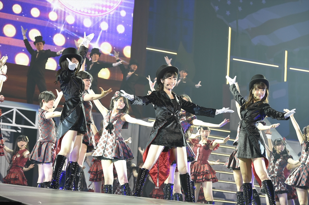 『10年桜』を合宿で選抜されたというメンバー16人で披露した後は、47人全員でチーム8オリジナル曲『47の素敵な街へ』も披露。フレッシュな空気に包まれた所で、それをさらに一転させAKB48ヒット曲をアレンジしたスイングジャズメドレー。ビッグバンド風のジャズアレンジの大きな波の中、宙吊りも披露し大きな拍手に包まれた。