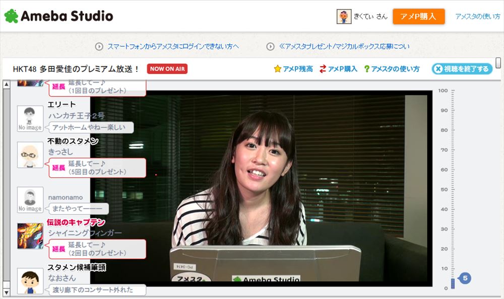 8月28日、HKT48・多田愛佳さんが出演するインターネット番組「HKT48 多田愛佳のプレミアム放送!」が「AmebaStudio」にて放送された。