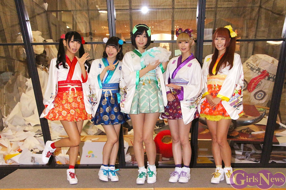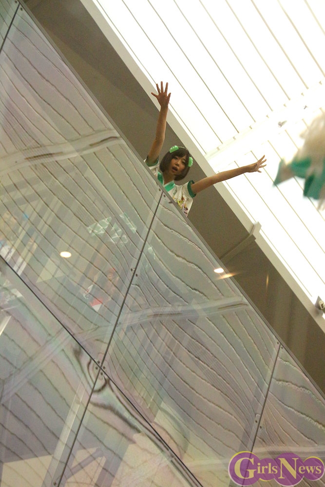 東アジア文化都市の広報親善大使を横浜市を代表して務めるでんぱ組.incのメンバー5名(相沢梨紗は諸事情により欠席)は、美術館のエントランスホールに設置された高さ7メートルのゴミ箱を見上げて巨大さにビックリ!