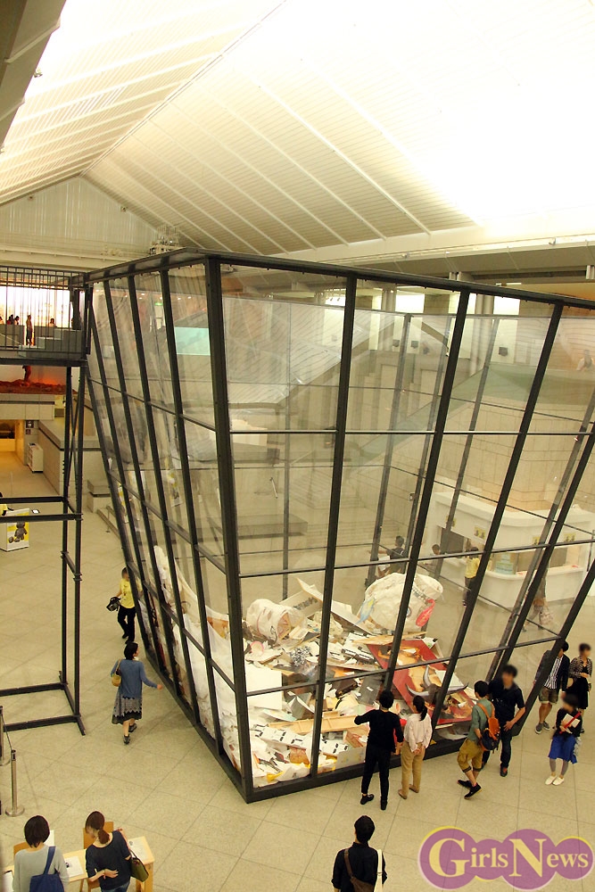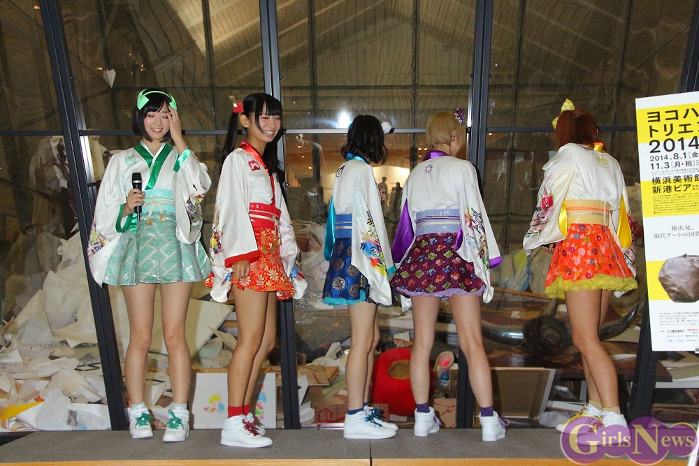 8月30日、神奈川県の横浜美術館で開催中の現代アートの国際展「ヨコハマトリエンナーレ2014」にアイドルグループ・でんぱ組.incがPRのゲストとして出席し、巨大ゴミ箱に作品を投棄するアートパフォーマンスを体験した。