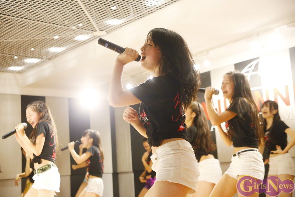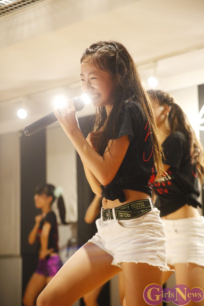 まずはメンバーのうち5人で「教室サバイバル」を披露すると、続く1st single「Kiss My Girls」はそれとは異なる選抜メンバー4人でパフォーマンス。そこからさらにメンバーを変えながら2曲連続披露。
