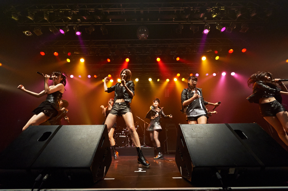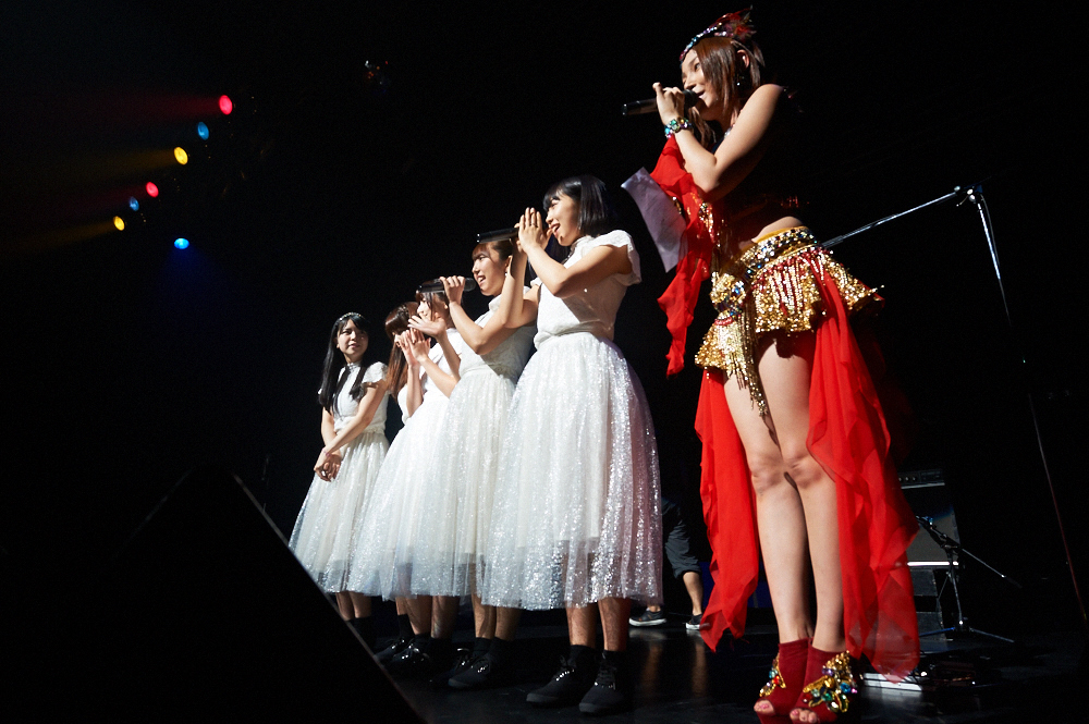 満を持してのLoVendoЯ登場。これまでライブ会場と物販スペースに分かれていたお客さんが一斉にライブ会場に集まり、二階席は出演アイドル達が勢ぞろいした。「イクジナシ」「BINGO」「この世に真実の愛が一つだけあるなら」「人生マニアック」の4曲をパフォーマンス。初見のお客さんやアイドルの注目は田中れいなに集まったが、岡田万里奈とのツインボーカルによるハーモニー、魚住有希と宮澤茉凛のツインギターの演奏に魅了された。