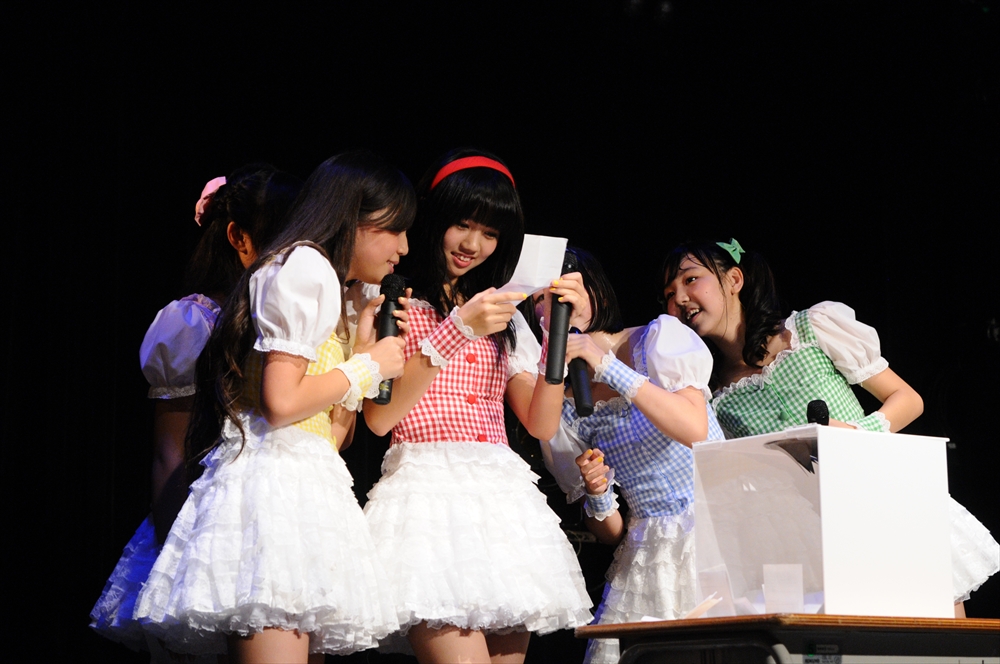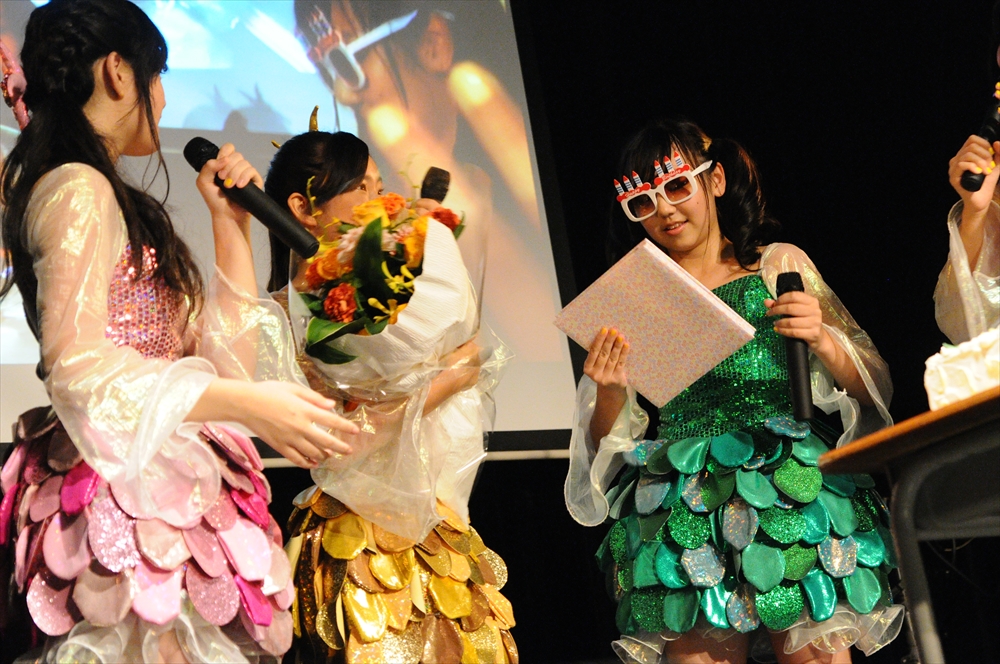 ライブ中盤には先日14歳になったばかりの竹内夏紀の生誕を祝うコーナーがあり、竹内の似顔絵ケーキやファンクラブからの花束も登場!そして竹内からメンバーそれぞれへの日頃の感謝の手紙を披露。