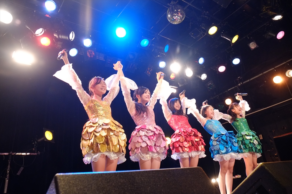 「いつか世界を釣り上げます!」で人気急上昇中の5人組アイドル、つりビットが9月15日(祝・月)、東京・表参道GROUNDにて2回目のワンマンライブ「つりの恩返しvol.2~まずは表参道を釣り上げます♪~」が昼夜の2部制で開催された。