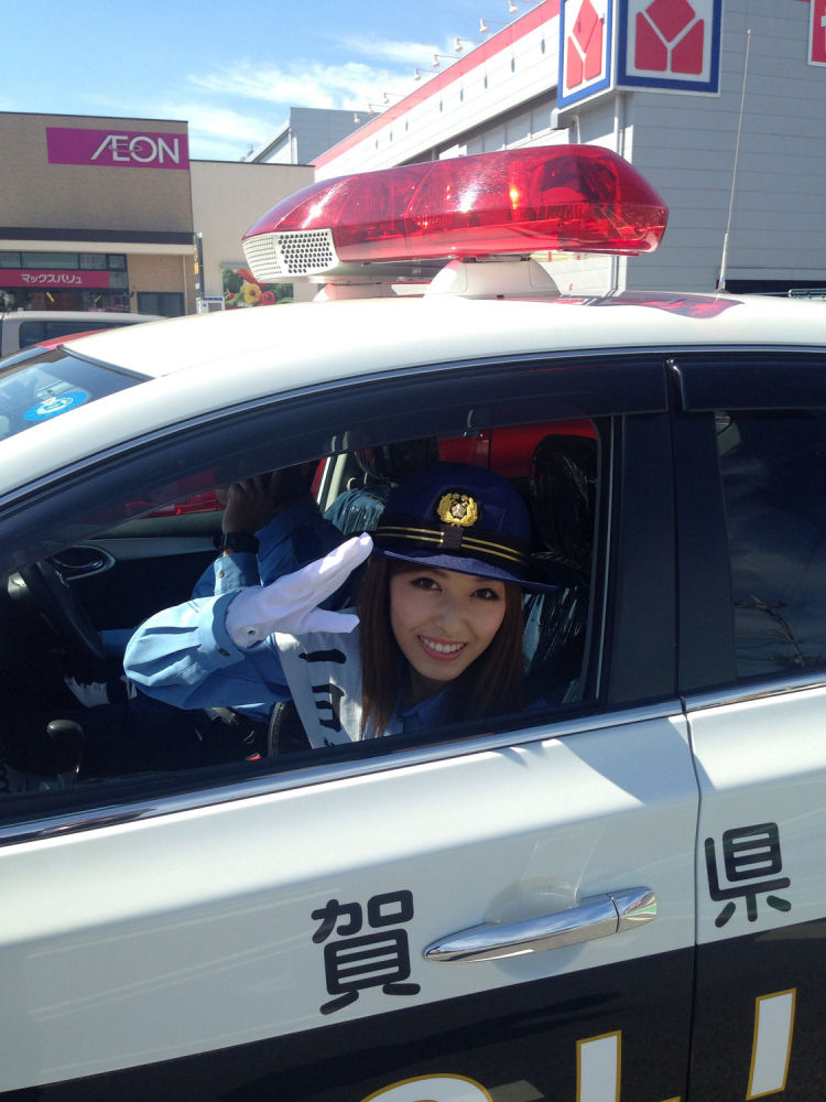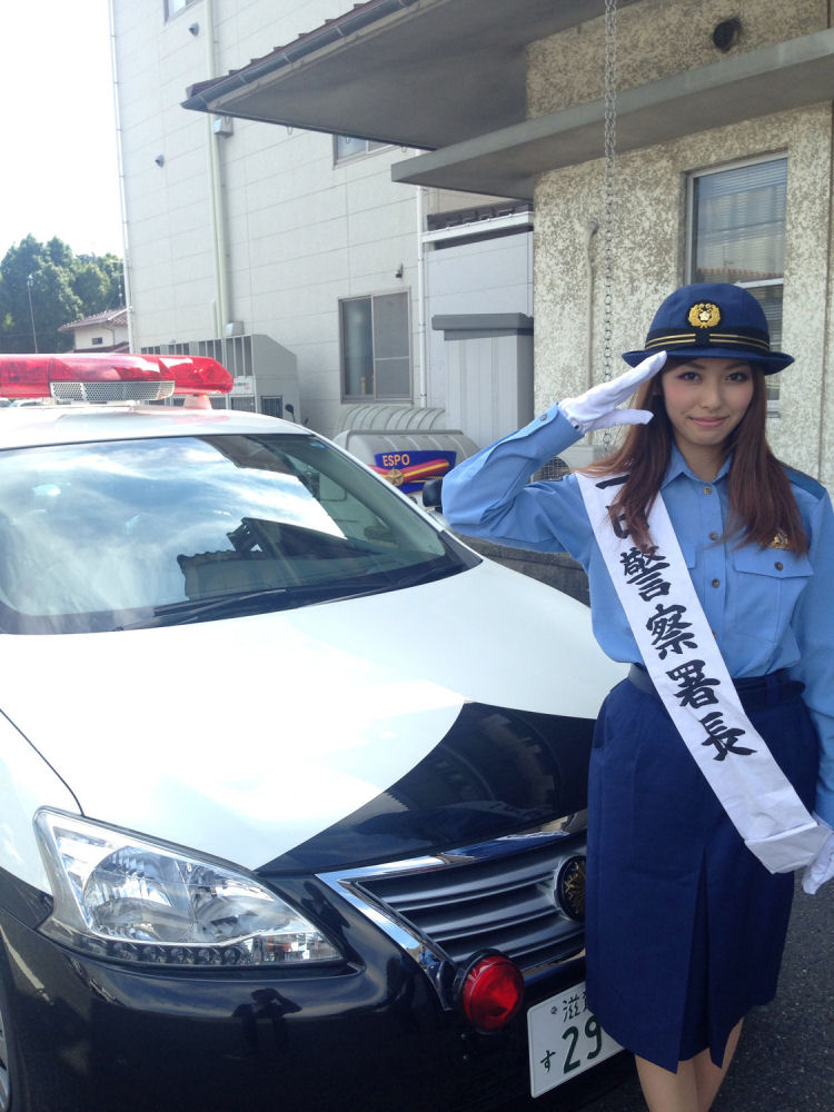 橘ゆりかは「私の生まれ育った町、東近江の警察署で一日警察署長をさせていただきました。町のみなさんへ万引き防止や交通安全を呼びかけたりしました。その際に本物の制服を着たりパトカーに乗せていただいたり、敬礼を教えていただきました。一日警察署長として貴重な体験をさせていただきました。特に制服が着れて嬉しかったです。たくさん写真撮っちゃいました!交通安全をより心がけていきたいと思いました。」と感想を述べた。