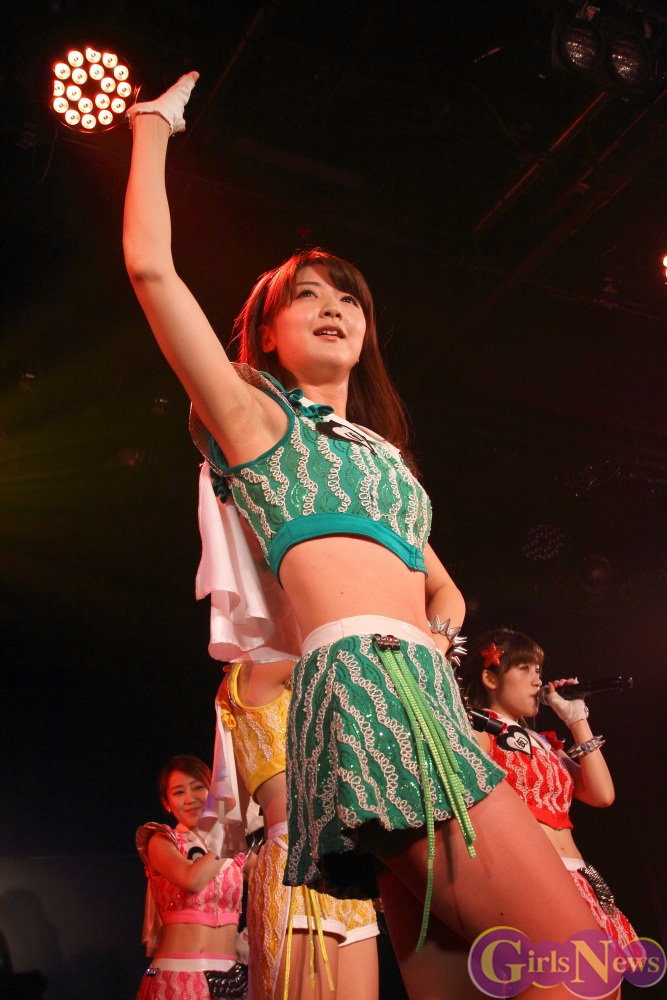 ライブの後半は、AKIBAカルチャーズ劇場での定期公演ではおなじみとなった客席に降りてのパフォーマンスも。「ワイドルセブン」や「アップアップタイフーン」といった曲を客席のすぐ近くでパフォーマンスし、さらに大きな歓声を引き出していた。