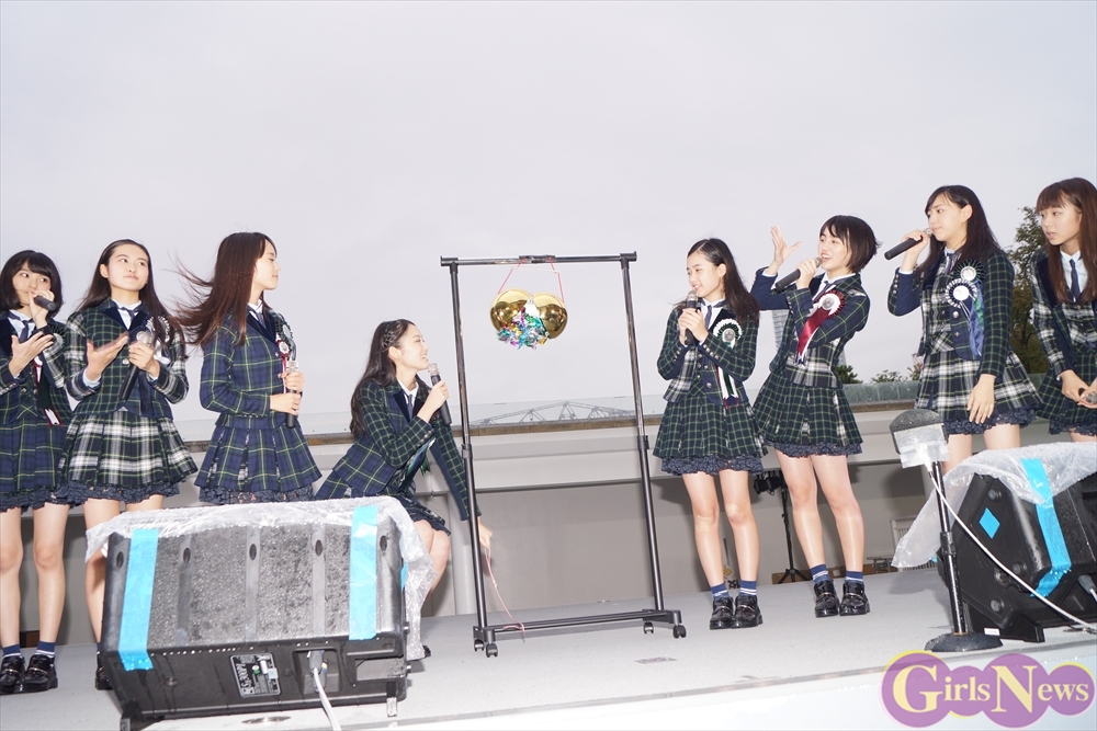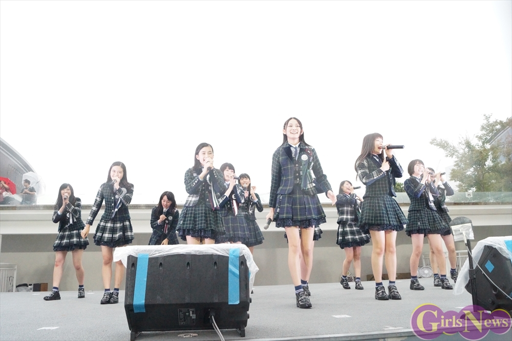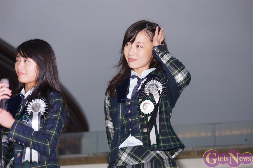 ちなみに雨女は誰なのか質問されるとメンバーは籠谷さくらさんの方に視線が注ぎ、籠谷さくらさんは「違います!」と一旦は否定するも「外で写真を撮る時によく雨が降ります。」と告白。すると末永真唯さんは「でもリーダー(吉本実憂)は晴れ女です。」と、吉本実憂さんの晴れ女パワーと籠谷さくらさんの雨女パワーの力加減で、雨が降ったり止んだりした模様。