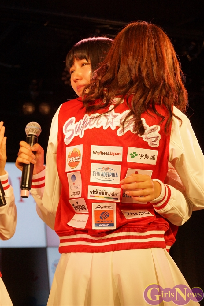 今回のイベントでは冒頭に記者会見が行われ、8月1日よりSUPER☆GiRLSのメンバーが着用している移動着チームウェアの秋冬バージョンでメンバーが登場。同時に応援企業ワッペンも決まり、移動着チームウェアに付けら、その応援企業の紹介が行われた。