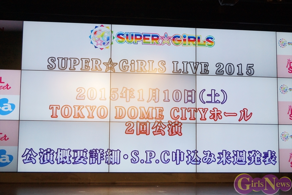 続いて、2015年1月10日(土)にSUPER☆GiRLSのワンマンライブがTOKYO DOME CITY HALLにて開催されることが発表され、さらに、2015年1月11日(日)に代々木公園野外音楽堂でアイスト3グループ(SUPER☆GiRLS・Cheeky Parade・GEM)と無料ハイタッチ会の開催が決定。