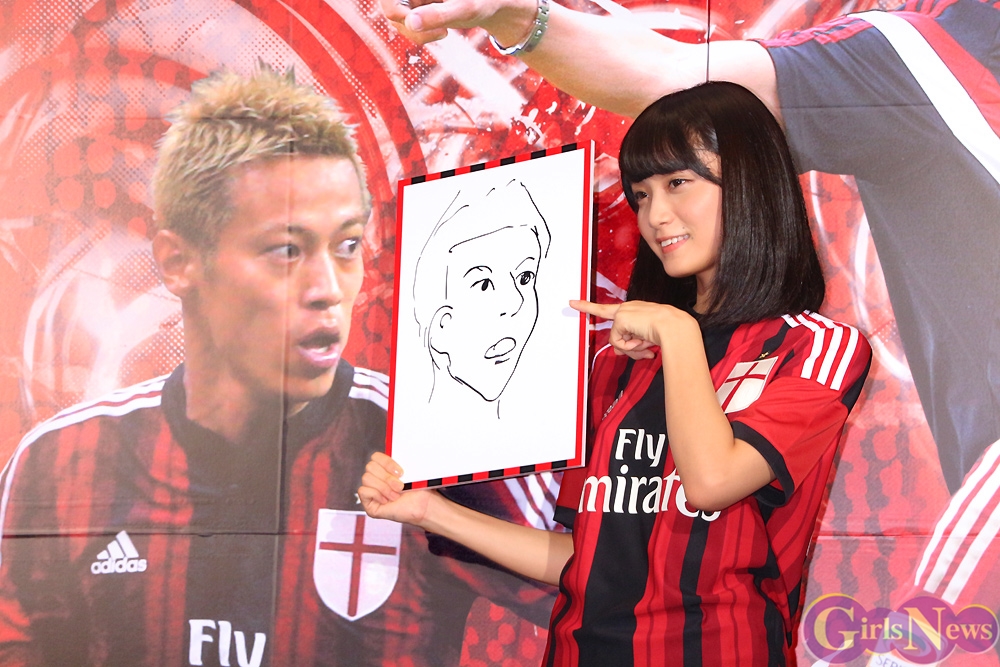 会見で深川麻衣さんの特技である10秒似顔絵に挑戦することになり、本田圭佑選手やACミランの選手の似顔絵を披露した。2人のプロデューサーからの合格が得られれば、ミラノの取材に同行できると聞いて、期待を高まらせた深川麻衣さんだが、判定は合格には至らず、結果は持ち越しとなった。