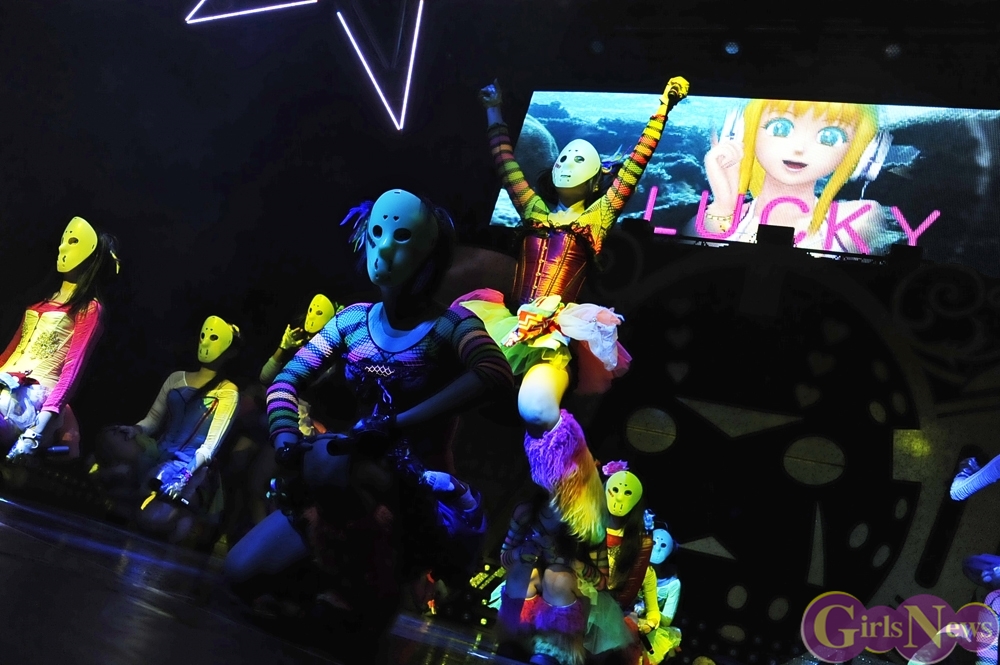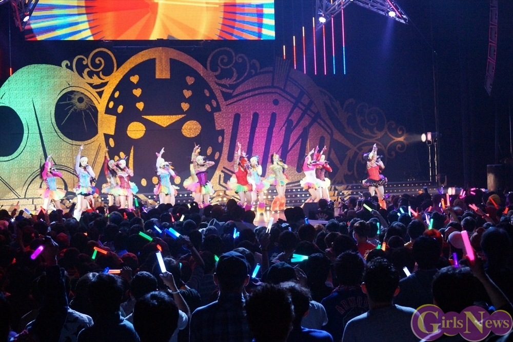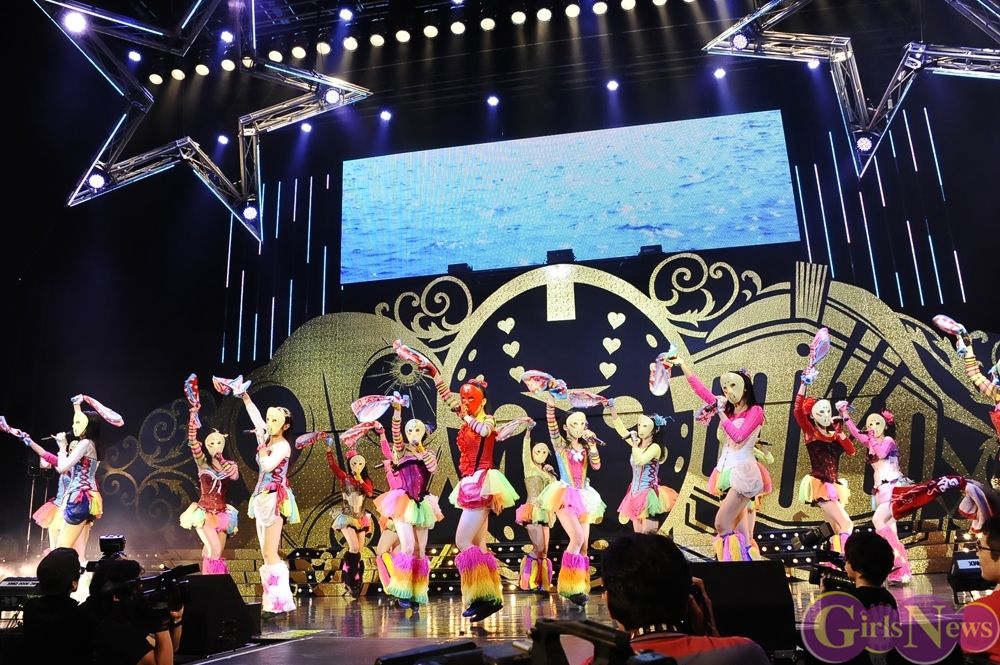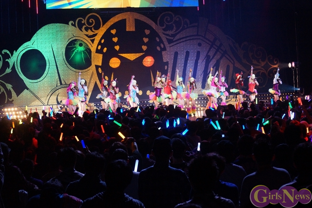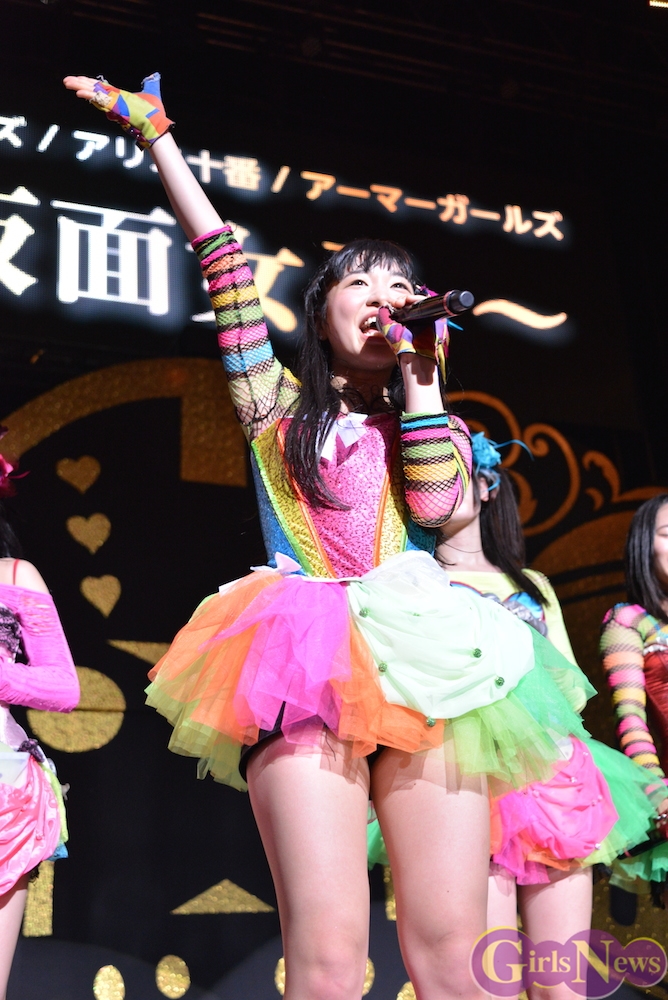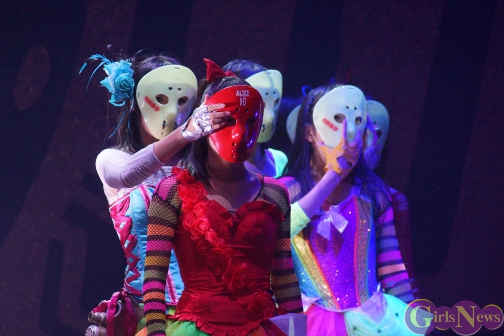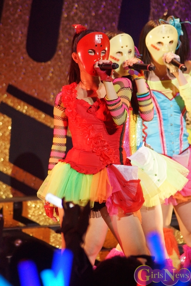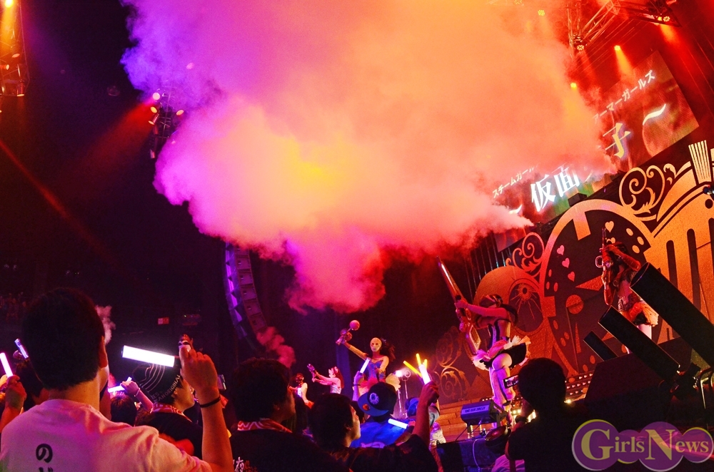 仮面女子のアーマーガールズ、スチームガールズ、アリス十番とステージに現れ「アリスインアンダーグラウンド」「Wohhhh!!!!☆」「天地-AMATSUCHI-」と3曲連続で披露。