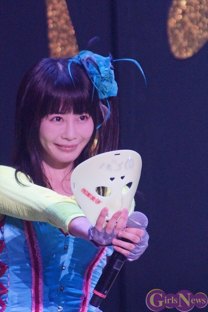 ライブ中盤ではビデオレターが届き、スクリーンには美川憲一さんによく似た「さそりさん」が登場し、「仮面女子の皆さん! 元祖 地下アイドルの“さそり”よ! Zepp Tokyoワンマンライブおめでとう! 最近頑張ってるのよね、すごいわ。でもねぇ、私から言わせりゃ、あんたたちまだちょろいわよ!」とメッセージが・・・。どうやらさそりさんは仮面女子の仮面が欲しいらしく、ステージ上に現れたさそりさんの親衛隊に紫の仮面をプレゼントした。