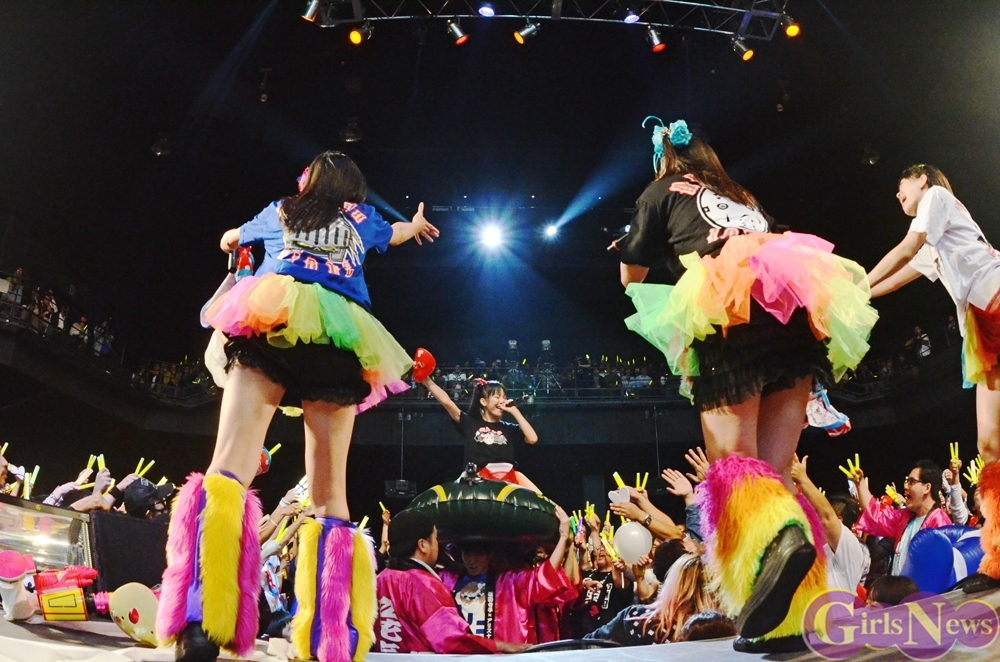 そして、予告されていた水着でPVを撮影し話題沸騰の仮面女子の新曲「マリン☆ロード」を初披露。ファンはタオルを振り回し、熱い声援を送った。