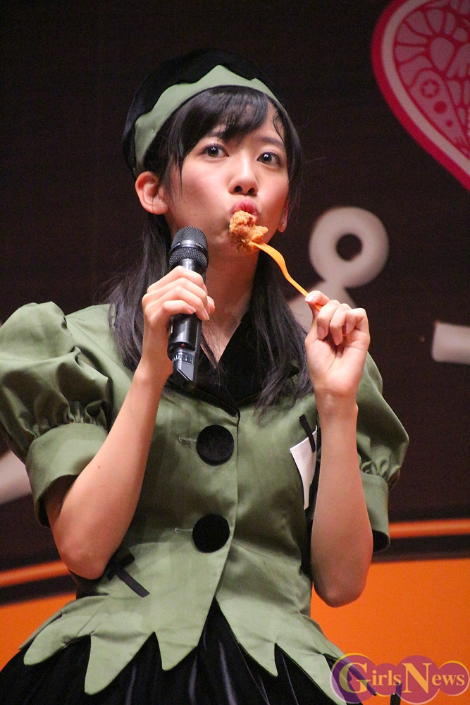 イベントでは、サークルKサンクスのハロウィン限定となる新商品をメンバーが試食して食レポに挑戦し、「鶏からあげ(本醸造醤油仕立て)」「直巻おにぎり オムライス(パンプキン入り)」「マジカルフルーツミックス」「シェリエドルチェ 窯出しとろけるかぼちゃプリン」の4品を紹介した。
