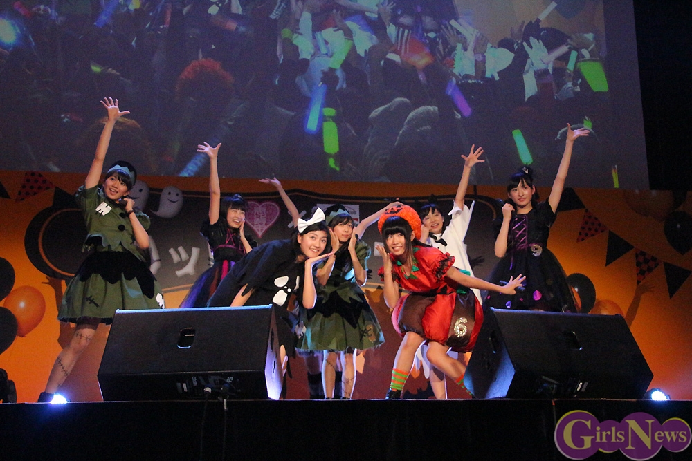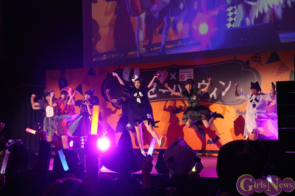 ミニライブでは、ハロウィンにぴったりな「オーマイゴースト?~わたしが悪霊になっても~」を始め、11月5日に発売される新曲「ハイタテキ!」などを5曲を披露。全力で熱唱するメンバーに、客席もメイクのペイントが汗に流れるほどのカオスな熱狂ぶりで盛り上がっていた。