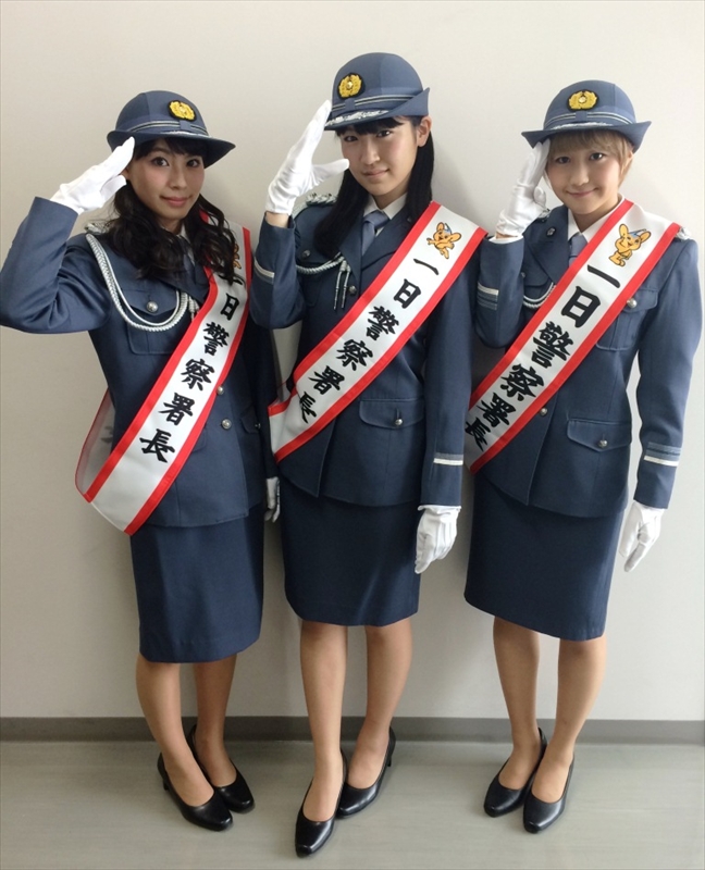 10月11日、SUPER☆GiRLSの渡邉ひかる(20)、宮崎理奈(20)、前島亜美(16)が、“大崎警察署一日署長”に就任した。