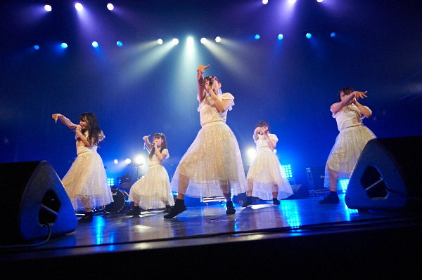 全員白衣装に着替えての登場。「お化け屋敷に就職しよう」「帝王の華麗なアリバイ」「三ツ星レストランポールからの招待状」の3曲。オープニングの紹介から”ファンタジーワールドへようこそ”から始まる締めのMCまでキッチリとした世界観を提示するステージは5人になって益々魅力に磨きがかかっている。