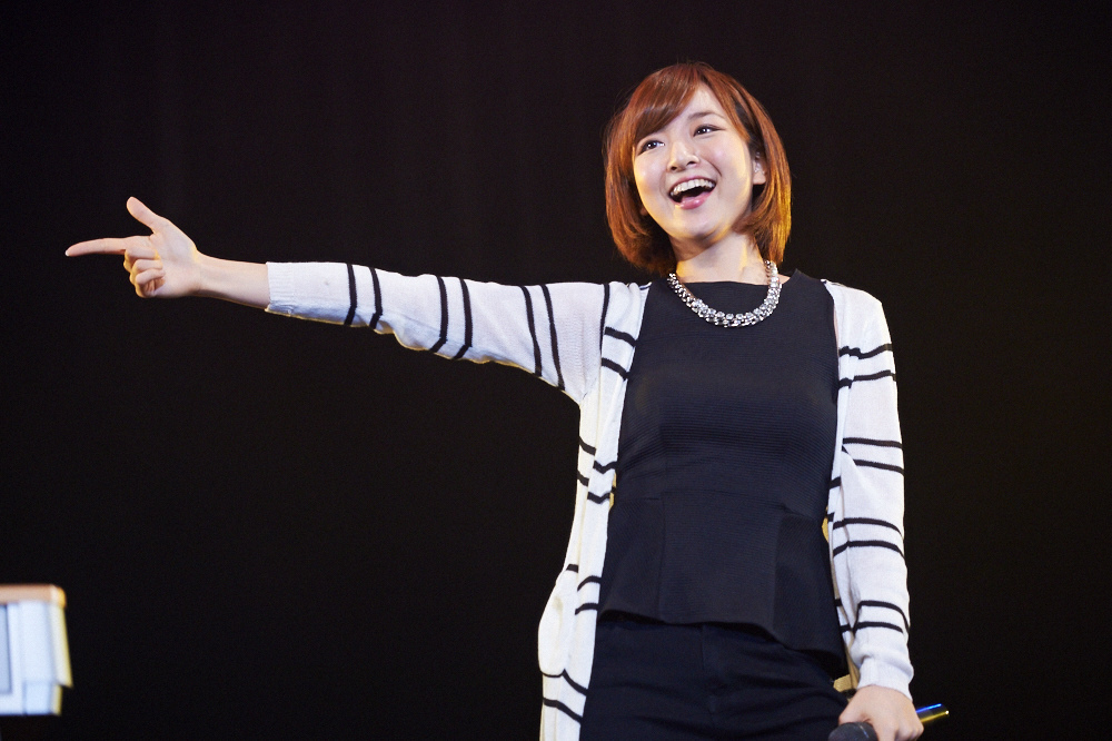 最近はTHE ポッシボー、吉川友、アップアップガールズ(仮)の3組からなる「チーム・負けん気」の活動も並行し、精力的に活動している彼女。アイドル界随一の歌唱力と評される彼女の歌のうまさと持ち併せるオーラのような雰囲気は、観客を一瞬にして心を掴んでしまう。落ち着いた黒と赤のシックな衣装もまたその印象をより際立たせるかのよう。かと思えば愛らしく特徴的なMCで場を和ませ、きっかワールドへ知らない間に惹きこまれてしまっている。それはすごい才能である。「URAHARAテンプテーション」、10月29日に発売される最新シングル「「すき」の数え方」と「あまいメロディー」、そして「ずっとずっとずっと君がスキだ」の4曲を披露。とにかく彼女から目を離す事など、できはしない。