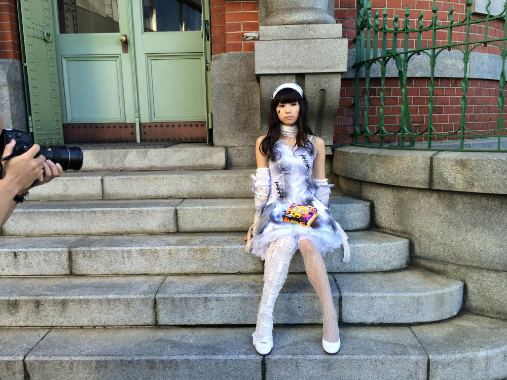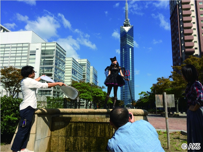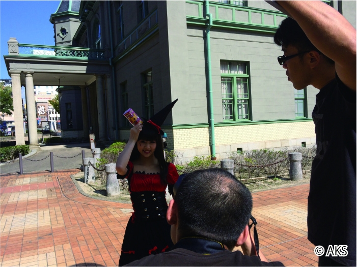 (撮影の合間)色んな衣装を着て博多の街を回っていると通行されている方からすごいジロジロ見られてちょっと恥ずかしかったですが頑張りました。