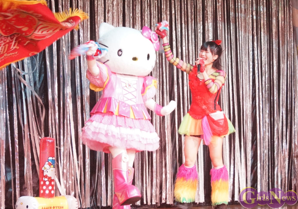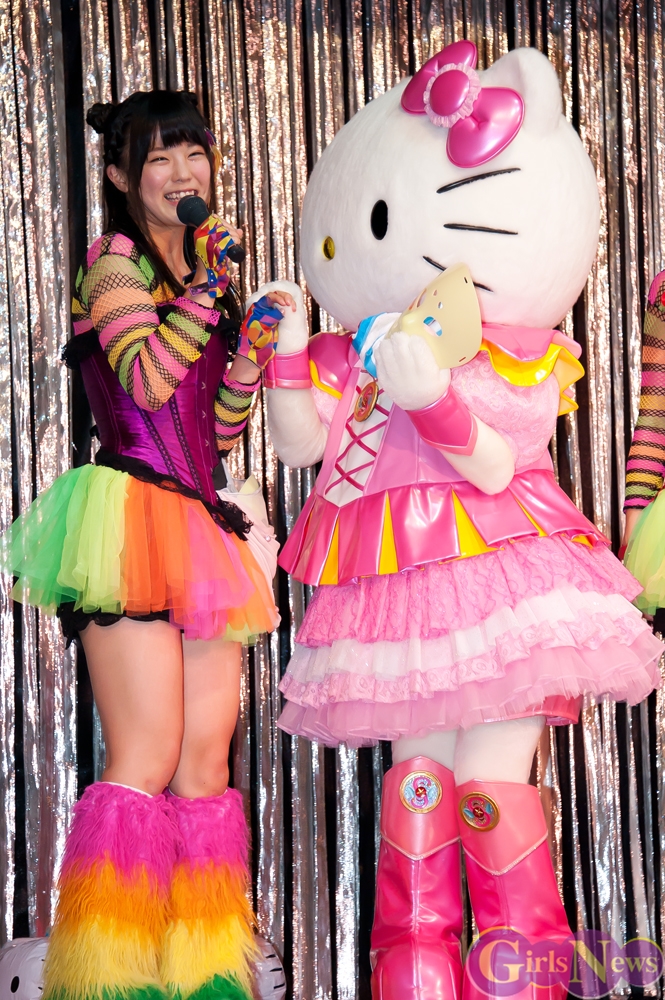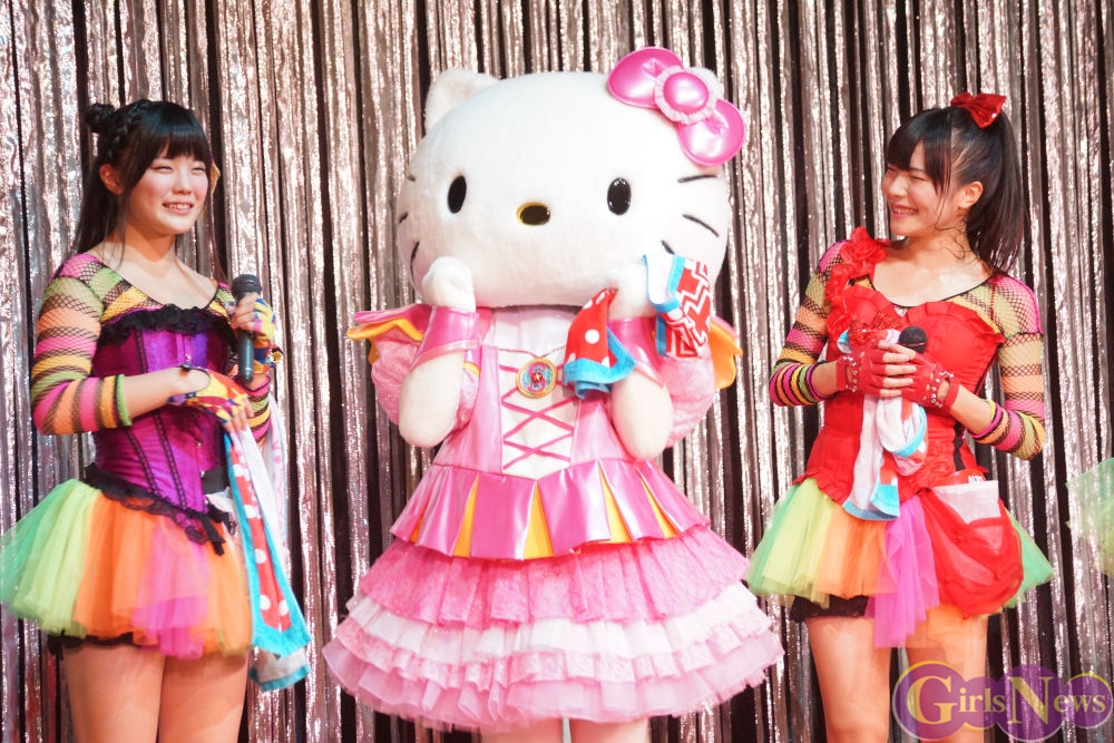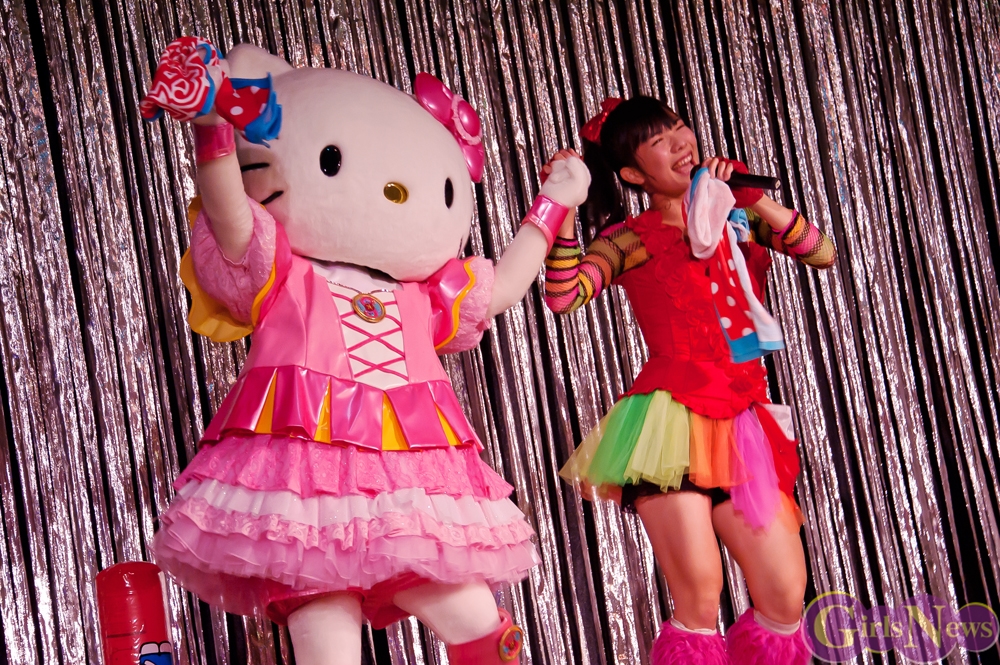 さらに「あきばサンダルっていうのをコラボしてキティちゃんバージョンっていうのを出せたらいいなって思っていて、もしもコラボできたら夢のようです。今日も『夏だね☆』をキティちゃんが振り覚えて踊ってくれたので私泣いちゃったくらいです。裏で(キティちゃんに)『踊れるの?』っていったら、動画見たってジェスチャーで教えてくれて、キティちゃんがより一層好きになりました。さすがプロだなって思いました。」と語っていた。