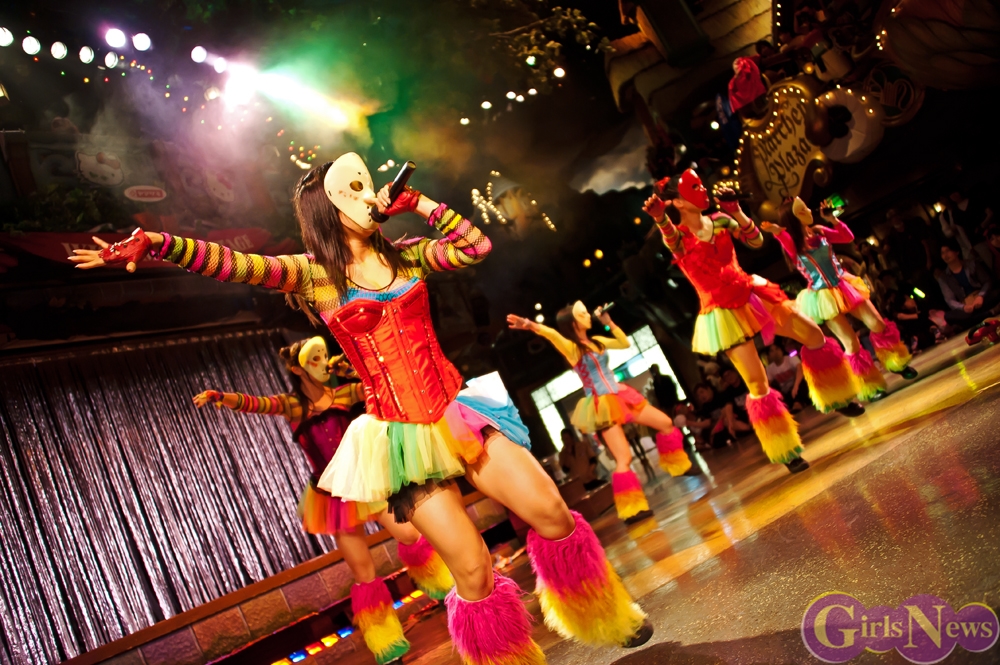 この日、サンリオピューロランドでは4月に続いて第2弾となるコスプレイベントが行われ、来園者が思い思いのアニメやゲームなどのキャラクラーに扮して「コスプレ」を楽しむ中、仮面女子:アリス十番が登場。仮面を被ったアイドルたちにサンリオピューロランドに遊びに来た子供たちも釘付け。