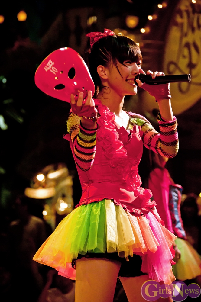 この日の登場した仮面女子のメンバーはアリス十番としても活動している、桜のどか・立花あんな・森カノン・渡辺まあり・川村虹花の5人。「全開ヒーロー」を披露するとサイリュームを手に持ったファンが熱い声援でライブを盛り上げる。