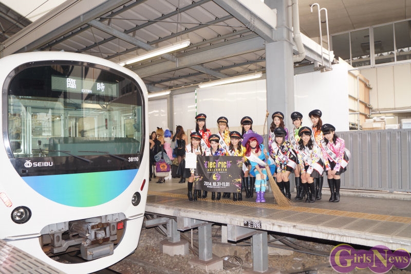 西武鉄道池袋駅では「ELECTRICK Halloween 2014(エレクトリック ハロウィン)出発式・就任式」が行われ、人気アイドルグループ SUPER☆GiRLSが西武鉄道池袋駅の1日駅長に任命され、代表してリーダーの志村理佳さんが任命状」を受け取りました。