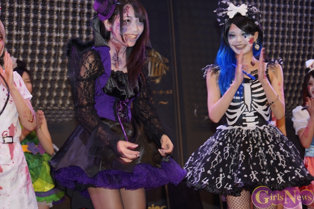 普段はそれぞれステージ衣装でライブを行っているが、この日は「ハロウィンナイト」ということで、メンバーは思い思いの仮装で登場。