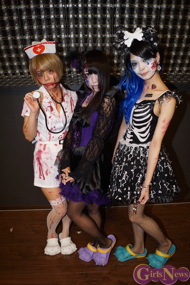 キュートなドレスからミニスカポリス、天使に悪魔にティンカーベルにナースにヴァンパイア、女王様に血のりに白塗りに奇抜な衣装で、一瞬誰なのかわからないメンバーも続出。