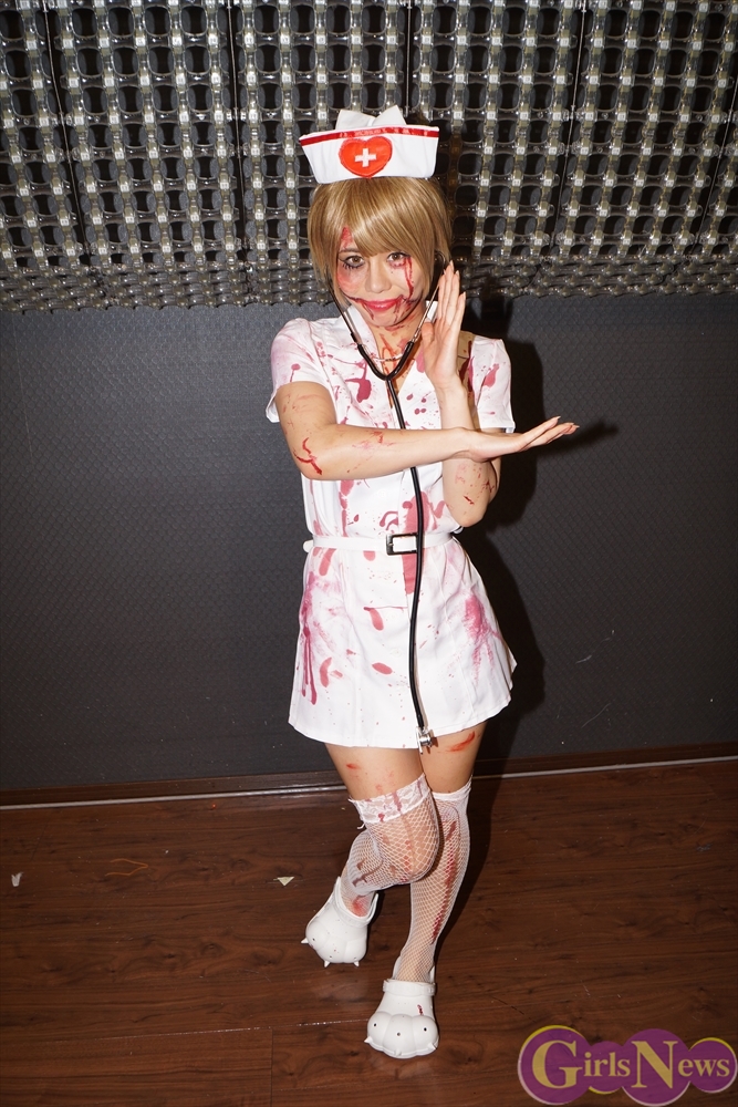 3位のアリス十番 森カノンさんは「私は1年間の行事の中で、一番ハロウィンが好きで、プライベートでも仮装したりするくらいなので、すっごく今回のアリスのハロウィンナイトが楽しくて最高でした。今回は血まみれ金髪ナースにしてみたんですけど、ショートの金髪ということで新たな自分を見せれたんじゃないかなと思います。」