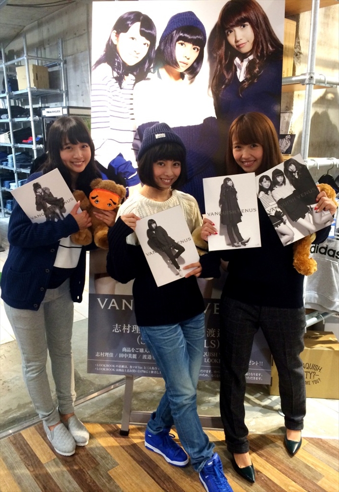 それに先駆け11月6日(木)、VANQUISH渋谷109MEN’S店の特設ブースより、ニコ生で配信中の番組「VANQUISH 石川涼の“いっせーのっ!!”」の公開生放送が行われ、今回13代目のVANQUISH VENUSを務めた志村理佳、田中美麗、渡邉幸愛の3名がゲストとして出演した。
