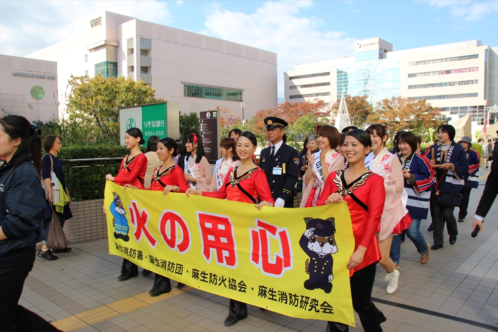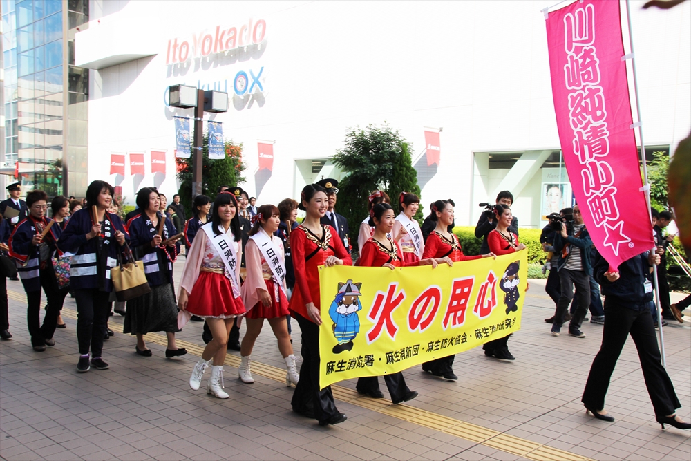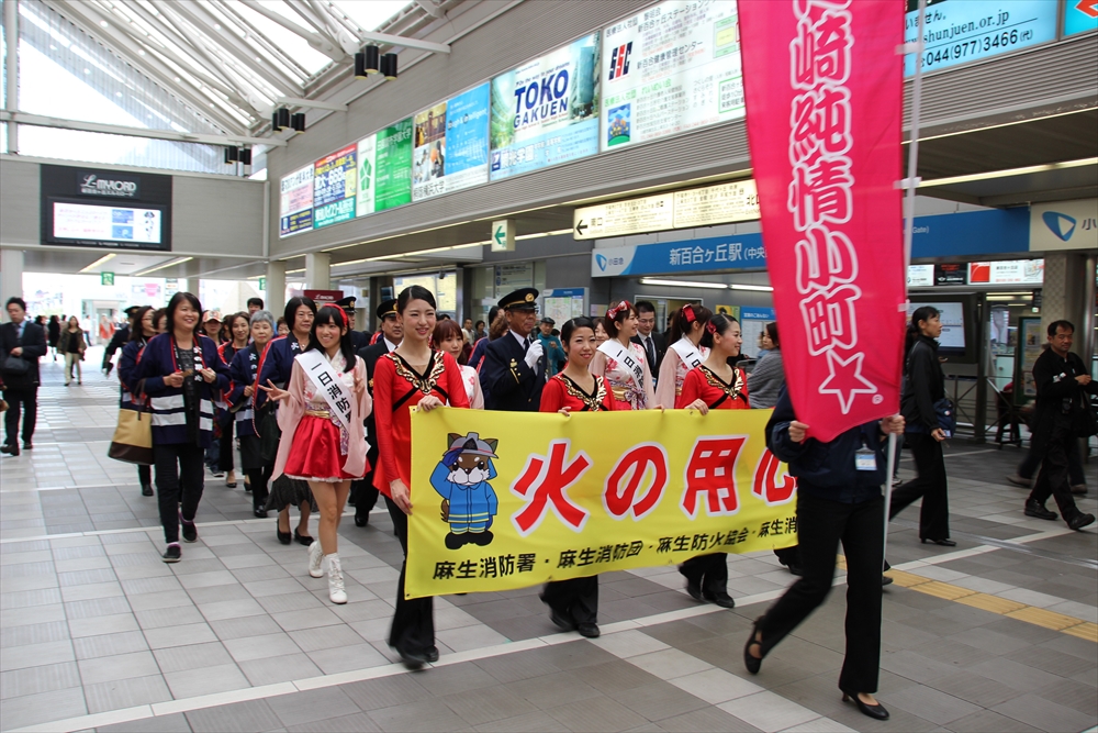川崎市消防局では、11月9日から15日までの7日間、火災が発生しやすい時季を迎えるに当たり、火災予防思想の一層の普及を図るため、火災予防運動を実施。「もういいかい 火を消すまでは まあだだよ」の標語を掲げ、各区で呼びかけを行っている。