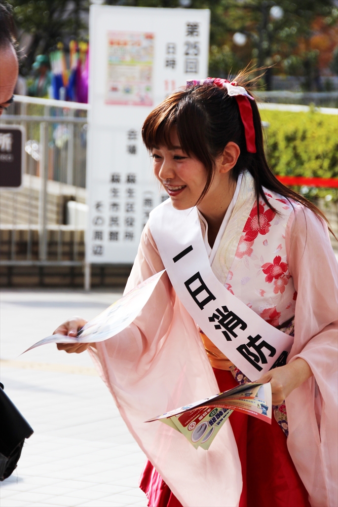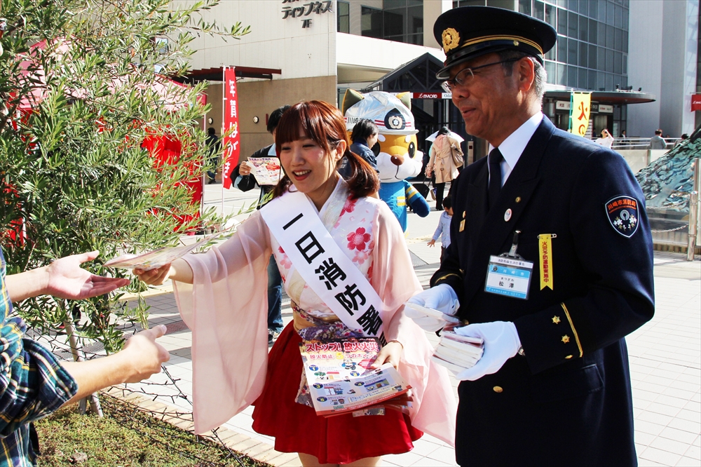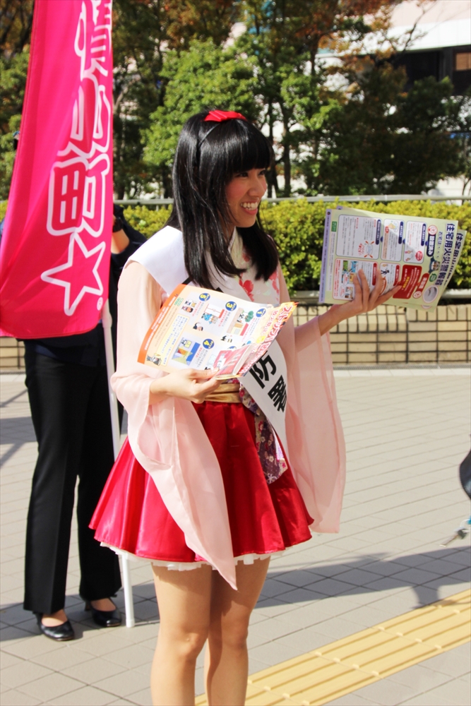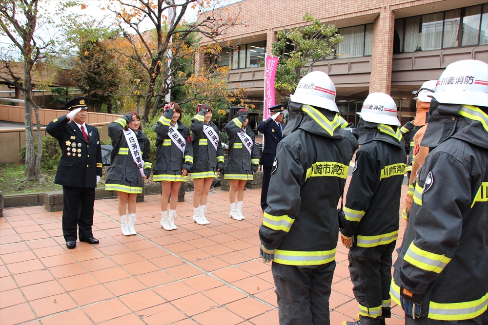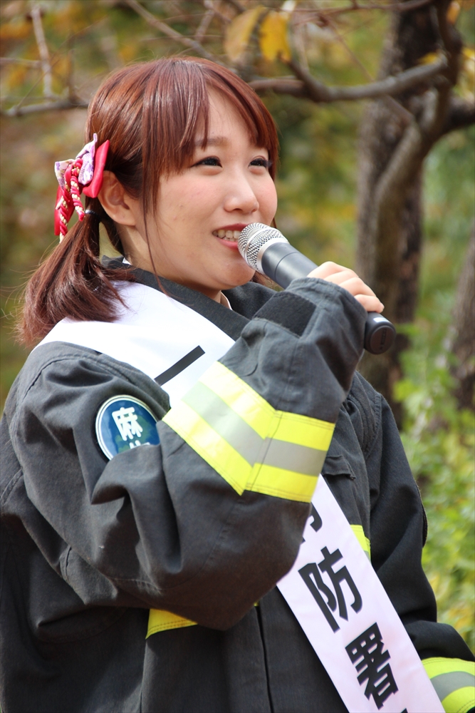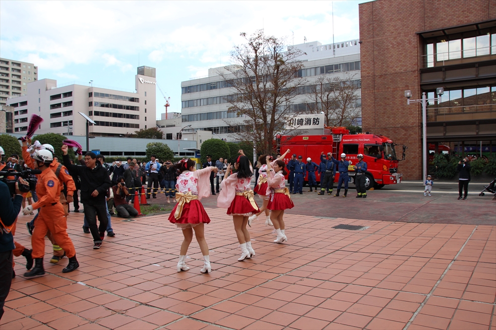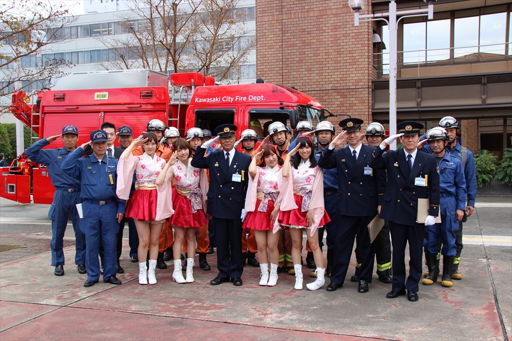 川崎純情小町☆は「今日はこの様な貴重な体験をさせて頂いてとても嬉しい。消防訓練を目の前で見て興奮した。市民を守るために私たちの知らないところで、たくさんの努力をして下さっていることがわかった。でもこのようなことが実際に起きないためにも、普段から一人一人の心掛けが大切。」と火災予防を呼びかけた。